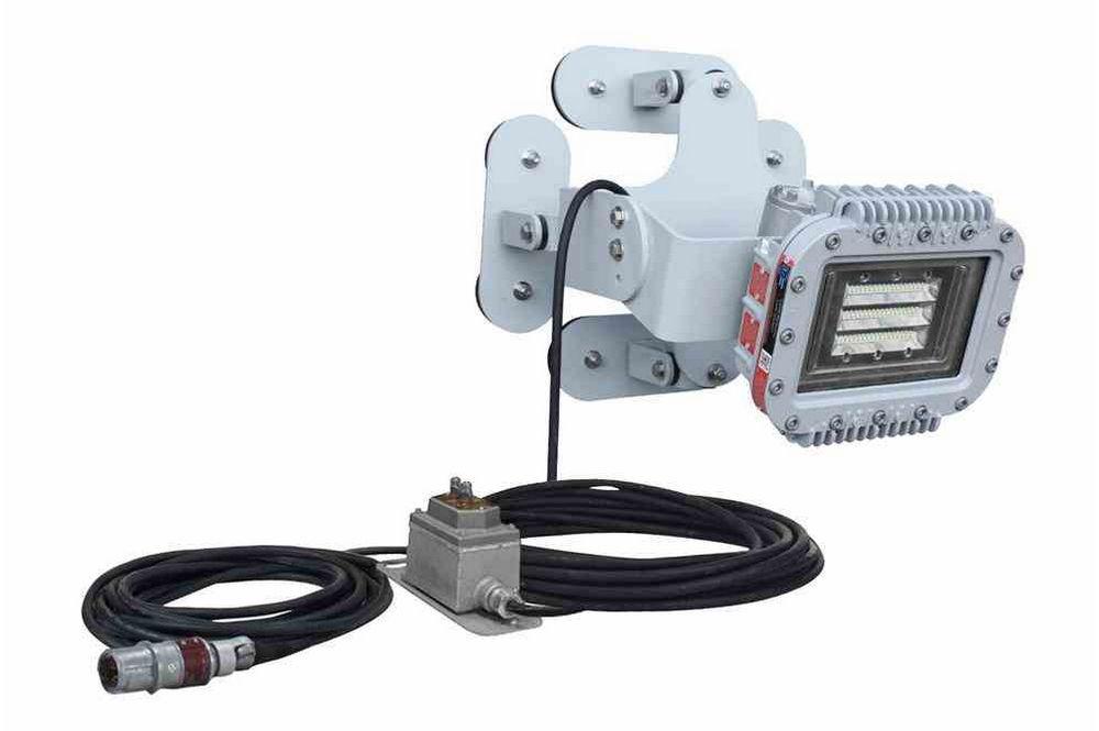 The Larson Electronics EPL-AMB-70LED-50-GFFI-CPP516 Low Profile Adjustable Magnetic Mount LED light fixture provides operators with a powerful and energy efficient alternative to traditional hazardous location tank cleaning light. The adjustable magnetic mount allows operators to install this fixture on curved surfaces without worrying about it falling off. This C1D1 LED tank cleaning light features an inline ground fault circuit interrupter and a pin-and-sleeve cord cap. The LED technology and adjustable compact mount design makes this low profile LED fixture an excellent replacement upgrade option for bulky and high maintenance cost older fixtures.