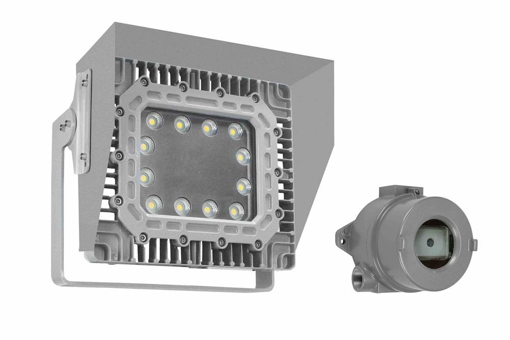 This Class I Division 1 & 2, Class II Division 1 & 2 explosion proof LED wall pack light fixture provides 11,667 lumens of high quality light while drawing only 100 watts. The copper free aluminum alloy body is powder coated for added durability and an attractive aesthetic appearance. Special heat dissipating design in conjunction with LED technology helps this fixture to achieve an excellent 60,000 hour rated lifespan with 80% lumen retention. Light weight and a low profile make this unit an attractive alternative to larger and heavier older fixtures and requires less hardware to install. The adjustable glare shield allows operators to adjust the cutoff of this wallpack, and prevents upward wasted light.