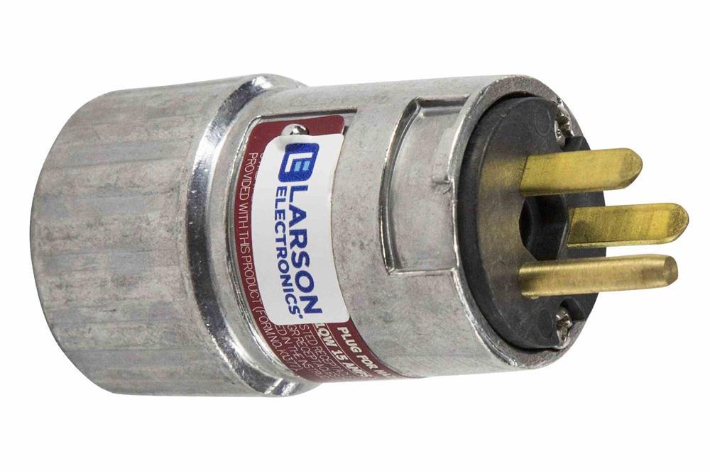 Larson Electronics EPP-15A-250V Explosion Proof Plug The EPP-15A explosion proof plug is rated at 15 amps and along with our with our EPP-20A series plug is compatible with our explosion proof 20 amp outlet. This plug can be used in both regular 250V outlets and T style outlets although in order to retain explosion proof safety, it must be mated to an explosion proof outlet. This plug is designed to lock into compatible twist lock receptacles by twisting the plug body until an audible click is heard, which indicates the plug is securely connected. Once locked into place this plug will not accidentally pull out. This plug is watertight and ideal for applications where moisture and corrosion is a problem and well suited for use in marine and manufacturing environments. This plug is rated Class 1, Division 1 and 2 and Class 2, Division 1 and 2 and is suitable for use in areas where pertrochemical vapors may be present. This explosion proof plug features non sparking aluminum construction, a longer housing for easy handling, specially designed brass pins for secure full length pin contact, and a 15 amp current rating.