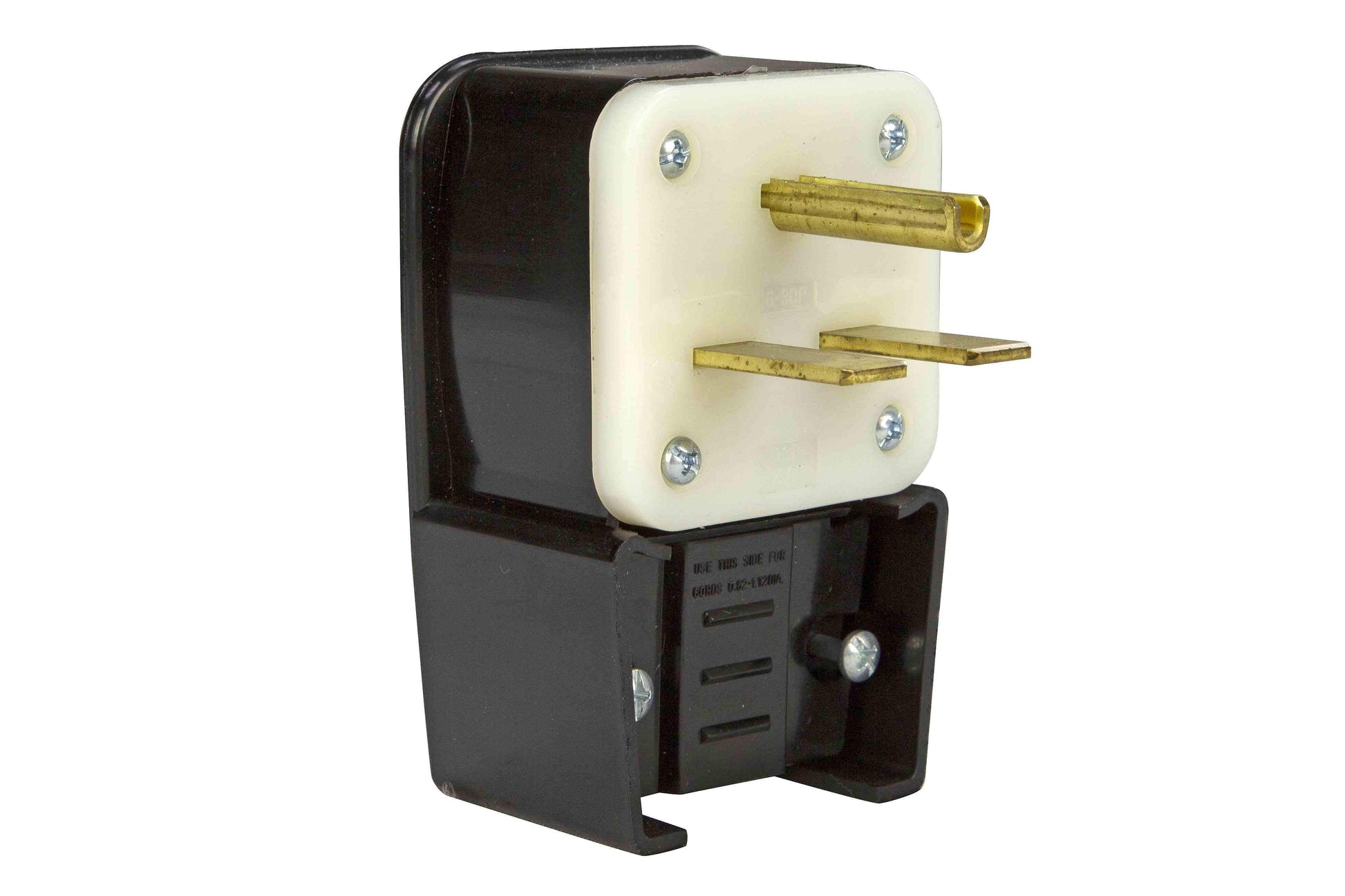 The GAP-250V-30A-6.30P straight blade plug is rated at 30 amps and is compatible with our 30 amp GAO-250V-30A-6.30C connectors and GAO-250V-30A-6.30R receptacles. This plug can only be used in straight blade NEMA 6-30R style outlets.