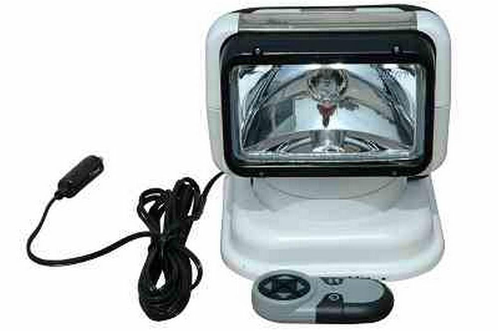 Remote Operation: Remote control functions include on/off, and 4 buttons which control up, down, left and right movement. The light will continue movement as long as the buttons are pressed. Releasing the buttons stops movement and holds the Golight in position. A fast and slow mode button (turtle/hare) controls the speed of the motor while the pan and tilt function buttons are depressed. Holding the button for 12 seconds in fast mode results in a full 370 degree rotation, and 8 seconds for full tilt. Slow mode is used for pinpoint accuracy at distance and is approximately 35 seconds for full rotation and 20 seconds for one full range of tilt. Durability: The GL-7901-CT Golight Radioray is designed for hunting and demanding outdoor use with a weather resistant housing constructed of high quality ASA Luran thermoplastic that is heat resistant, impact resistant, UV resistant and able to withstand rugged use and abusive conditions. This particular Golight is white in color, making it ideal for docks and buildings where an attractive appearance is desired. Remote movement of this spotlight is provided by an automotive grade internal motor, gear, and transmission assembly that is constructed of LEXAN, brass, and stainless steel to provide rust and corrosion resistance as well as long life and reliable operation. Mounting: The light slides on and off the base of the light. When the shoe is installed, a spring loaded button pops up locking the light into the base. The shoe base completely encapsulates the suction cup base. When the base is removed, the light can be mounted using the suction cup and the locking lever on the side to activate suction mount. The suction cup mount is released via side mount lever. The suction cup is not suitable for moving vehicles, boats, etc. The shoe has four predrilled holes for permanent mounting if preferred. Power: This light operates with 12 volts DC and draws 5.5 amps, making it ideal for vehicles, boats, ATVs, and similar sources of 12 volt direct current. On this particular model, the light has a 16 foot cord that ends in a cigarette plug. Clear Top Design: With the Golight clear housing top, applications where operators must position the light directly beneath the area that needs illuminating are now possible. Previous models limited the output of the beam greatly when positioned vertically up because of the fact that the housing was not clear, therefore blocking the light. With this clear top, more than 90% of the light is passed allowing the unit to be effective in that position. Light Output: The lamp in this Golight Radioray is a 65 watt Halogen Cr5 Pentabeam II bulb which produces 1,300 lumen. This bulb is paired with a tight focus spot beam optics to produce a spot beam 700 feet in length. This lamp has a 6000K color temperature, giving it very good color rendering and contrasting properties and the ability to clearly and sharply illuminate objects at long distances. This beam is effective to the far end of its reach, producing enough illumination to read a book at 700 feet. This high power Golight Radioray is ideal for hunting, security, boating, law enforcement, emergency services, utilities, and anywhere high power and remote control functionality are desired.