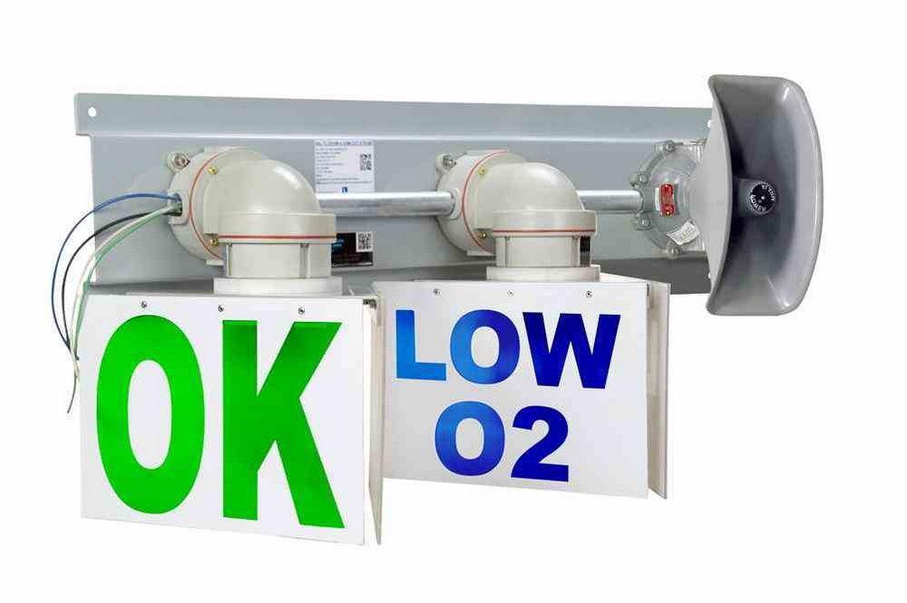 C1D2 20W LED Oxygen Level Warning Sign Light & Horn - Non-Metallic - Corrosion Resistant - 110dBA