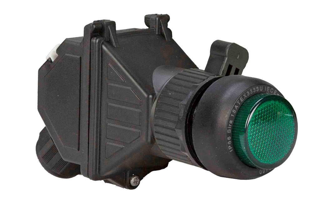 Hazardous Location LED Indicator Light - 100-250V - Green Lens - ATEX/IECEx Rated - IP66PL3-HLSW-AE.EX-PMU-PL-GRN-1227