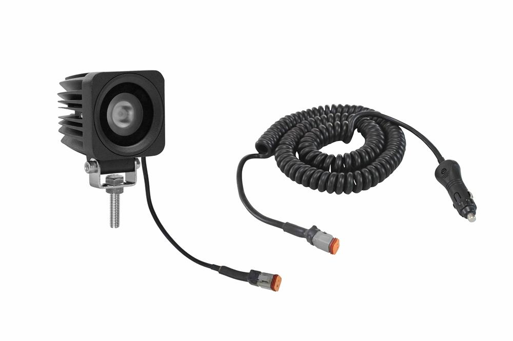 10W LED Flood Work Light - Permanent Stainless Steel Mounting Bracket - IP67 Waterproof - Deutsch Connector - 10' 16/2 Straight Cord w/ Cig. Plug