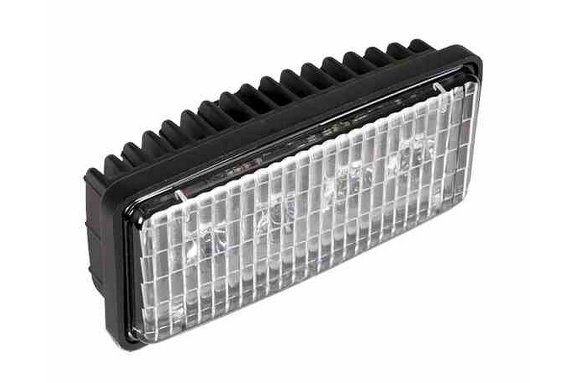 The IL-LED-DLR-5X2 is a suitable replacement for external tractor lighting systems. This 30-watt LED light operates on 12-24V DC. When in use, the luminary emits 1,440 lumens of white light with a color temperature rating of 6,000K in a flood beam configuration. The unit is constructed of sturdy aluminum and features waterproof protection. The back of the IL-LED-DLR-5X2 supports a breathable design for robust air flow, along with a standard 2-pin connector for quick installation.