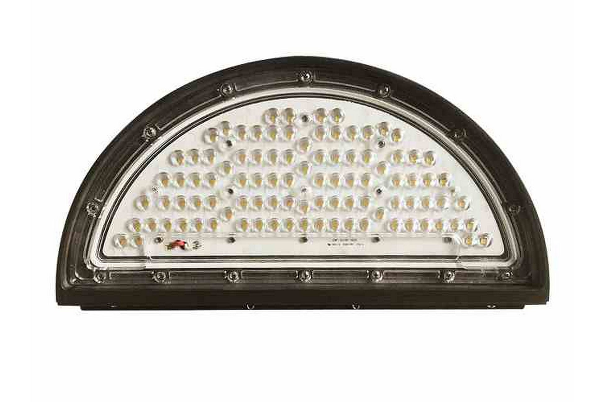 The LEDCWP-450 Football Style Full-Cutoff LED Wall Pack Light offers high light output from a compact form factor and is designed to provide a more durable and long lived alternative to halogen and metal halide units. This 45 watt integrated LED light assembly is designed to replace 120 watt metal halide wall packs and produces a wide flood beam without the high heat, fragile construction, or high energy costs of traditional lighting. The LED LEDCWP-450 provides 4950 lumens and 50,000 hours of reliability with up to 75% savings compared to traditional 120 watt metal halide wall pack fixtures.