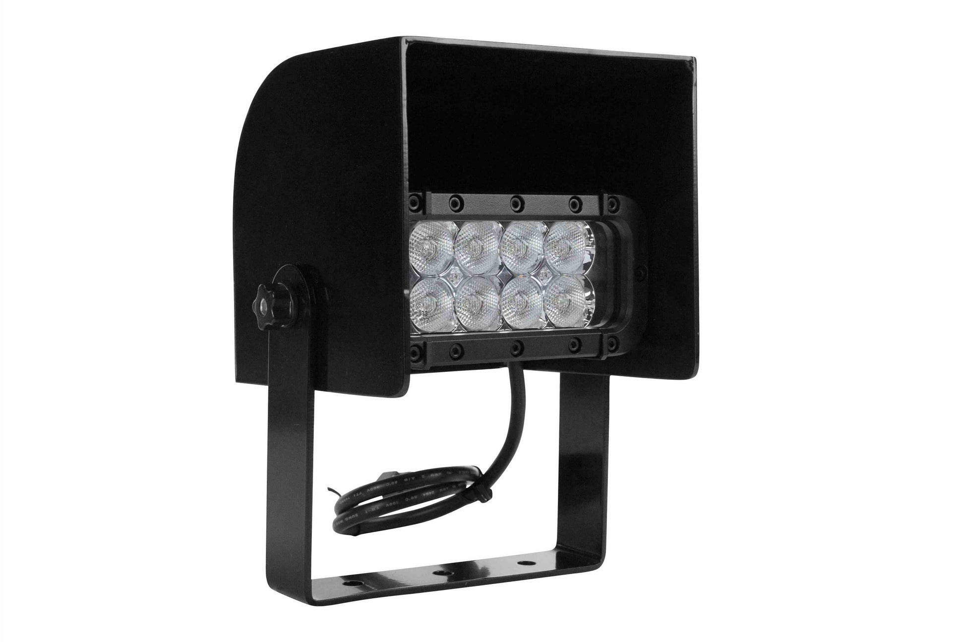 This glare shield covers both sides and top of the LED light bar to eliminate light pollution above or to the sides of the light fixture. This shield is adjustable, allowing operators to focus the light towards without leakage or light pollution escaping.