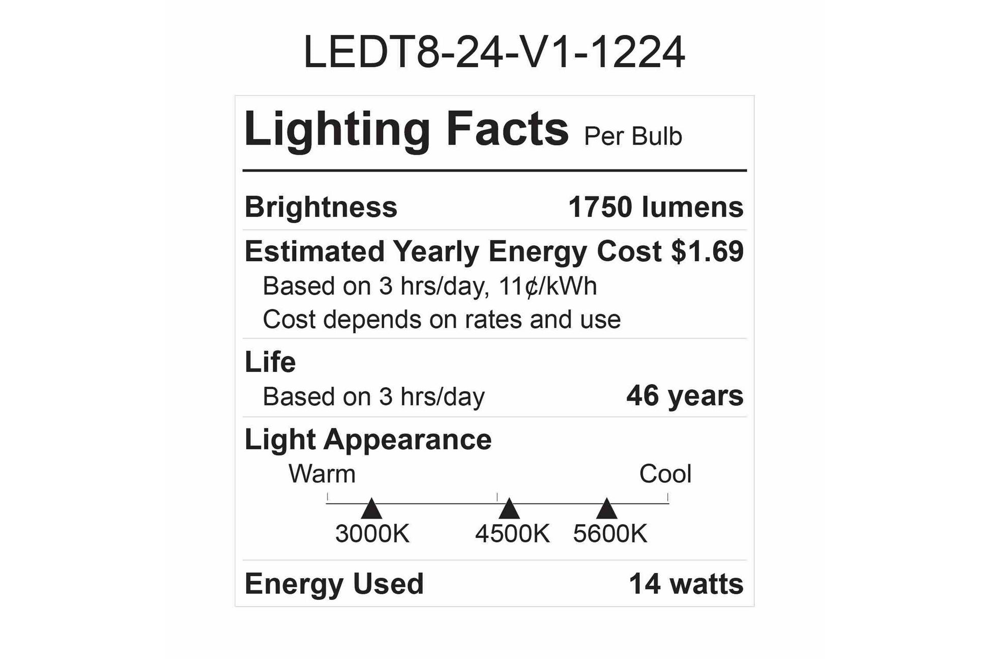 These are the first generation of our 14 watt LED tubes. Lumen output is 125 lumens per watt for a total of 1,750 lumens per bulb.