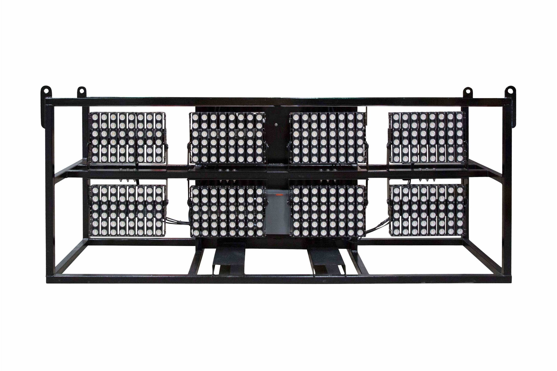 The SMLP-8X500LTL-LED-480V Skid Mount LED Light Plant by Larson Electronics is a massive 3,840-watt lighting system that is suitable for stadium lighting, crane rig lighting, outdoor events and more. This unit contains 8, 480-watt LED fixtures and operates on 480V AC 3-phase. Capable of emitting 518,400 lumens, the stadium light plant is mounted on a carbon steel, cube-style platform with picking eyes for seamless hoisting and transportation.