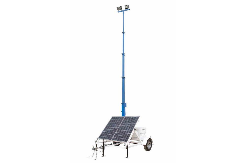 Solar Panel Assembly: This unit is comprised of two 265-watt solar panels, generating a total maximum output of 0.53 KW. The panels are mounted to a stationary assembly. The panels are wired to the solar charger control box which manages the charging system. The two solar panels are mounted to a frame angled at 45° to capture the intensity of the sun for optimized light intake. Component Control Center: All the electrical components are encapsulated in a NEMA 3R job box that is bolted to the trailer. Since most of these components are not rated for high heat, our component cooling system circulates air within the job box at 1400 CFM when the ambient temperature exceeds 90 degrees Fahrenheit. The job box that contains the component control system includes locks for security purposes. Trailer Assembly: The entire assembly is mounted to a 7.5` by 7`, single axle trailer via six 1/2" anchor bolts. The two wheel trailer is equipped with 3,500 lbs axle and leaf springs with 15" trailer tires. A standard 2" ball coupling, two standard safety chains, and 7-pin flat trailer plug allow for easy hookup and towing. The trailer tongue can be removed for long term deployment. A rugged and waterproof job box is included, safely secured to the trailer. Four outriggers mounted to the corners of the trailer allow operators to level the trailer, and provide stabilization during deployment. All trailer lighting complies with DOT/FMVSS regulations. Applications: Remote locations, outdoor sites, concerts, large events, campsites, emergency services, security checkpoints, law enforcement, military, mining, perimeter lighting and more.