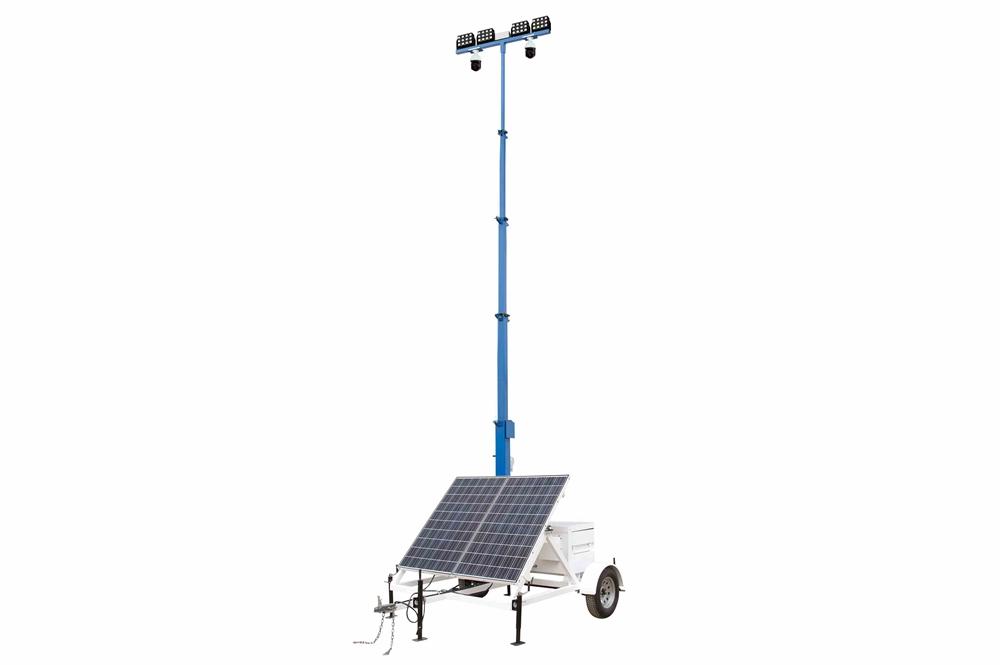 | The Larson Electronics SPLT-.53K-LM30-4X60LTL-ISDG-AT.DNS-TLR14-2XPTZ-W4G Solar Light Tower provides a safe and effective way for operators to quickly deploy 400 watts of intense LED illumination and security cameras to elevations up to thirty feet. This solar light plant features a telescoping light tower that folds over for easy transportation, features a rotating boom that allows for 360° of rotation, and a removable mast head for storing the four LED light fixtures and two outdoor cameras when not in use. Equipped with a 4kW backup diesel generator, the unit features two, 265-watt solar panels and a 200-amp capacity battery bank. The entire assembly is mounted onto a 14` single-axle trailer, allowing operators to transport this solar light tower from location to location. A 2TB NVR can be found at the base of the mast. *PLEASE NOTE: ANY FREE SHIPPING OFFERS DO NOT APPLY TO LIGHT MASTS OR LIGHT TOWERS* Solar Powered Light Tower: This solar light tower includes two solar panels, solar charging system, battery bank, backup diesel generator, four LED lamps with auto timer/sensor, two IP security cameras supported by an NVR, router/4G network capabilities and a manual crank-up mast mounted on a 14' trailer with outriggers. This 0.53KW solar generator system replenishes amp hours of usable battery capacity per day, assuming 5.5 hours of peak charging sunlight. This system delivers 24 volts for lighting mounted atop the 30` telescoping light mast. Operators may access a 2TB NVR for network configurations. The system, which supports wireless 4G hotspot access, utilizes CAT5E cable for networking. Solar Panel Assembly: This unit is comprised of two, 265-watt solar panels, generating a total maximum output of 0.53 KW. The panels are mounted to a stationary assembly. The panels are wired to the solar charger control box which manages the charging system. The two solar panels are mounted to a frame angled at 45° to capture the intensity of the sun for optimized light intake. Backup Generator: An included backup generator can be used for supplementary power. This 4kW diesel genset contains a 20-gallon fuel tank. Light Mast: This telescoping five stage steel light mast from Larson Electronics’ is designed to allow operators to quickly and safely deploy the four LED light heads in locations where this equipment must be elevated to heights up to 30` for effective coverage. This light boom can be extended to 30` above the trailer floor for maximum area coverage, and collapsed to 13.5` for applications where a smaller footprint is required. The tower is constructed of square steel tubing with a base section 6.6` in length and 6" by 6" by 3/16" thick, lower section 6.78` in length and 5" by 5" by 3/16" thick, middle section 6.93` in length and 4" by 4" by 1/8" thick, upper section 7.08` in length and 3" by 3" by 1/8" thick, and top section 7.58` in length and 2" by 2" by 1/8" thick. Each section has a 1`+ overlap. The mast is extended to its full height using an included 1,000lb rated hand winch with 3/16" galvanized steel cable. A 44" wide and 2" by 2" by 1/4" thick mounting plate is attached to the upper section of the mast which provides a strong and stable platform for the equipped LED light fixtures. When elevated to its full upright position, the mast can be rotated a full 360°. By loosening the T-Handle, operators can rotate the mast with easy in either direction. The mast can be positioned in one of four different positions, and locked back in place by re-tightening the T-handle. The mast itself spins freely with easy, and can typically be rotated with a single hand. The LM series of towers are powder coated with glossy blue finish for corrosion resistances and aesthetics. The LM family of telescoping towers feature a proprietary mast guidance system, which provide increased stability during high winds. Four 1,000 lbs hand crank leveling jacks are used for leveling. The jacks can be leveled by hand crank or attachment provided for power drills. These outriggers can be extended 2` out from the side of the trailer for added stability. When lowered to 13.5`, the mast can withstand winds up to 125 mph. Custom builds can be provided for higher wind speed resistance when fully raised. | ||||||||||||||||||||||