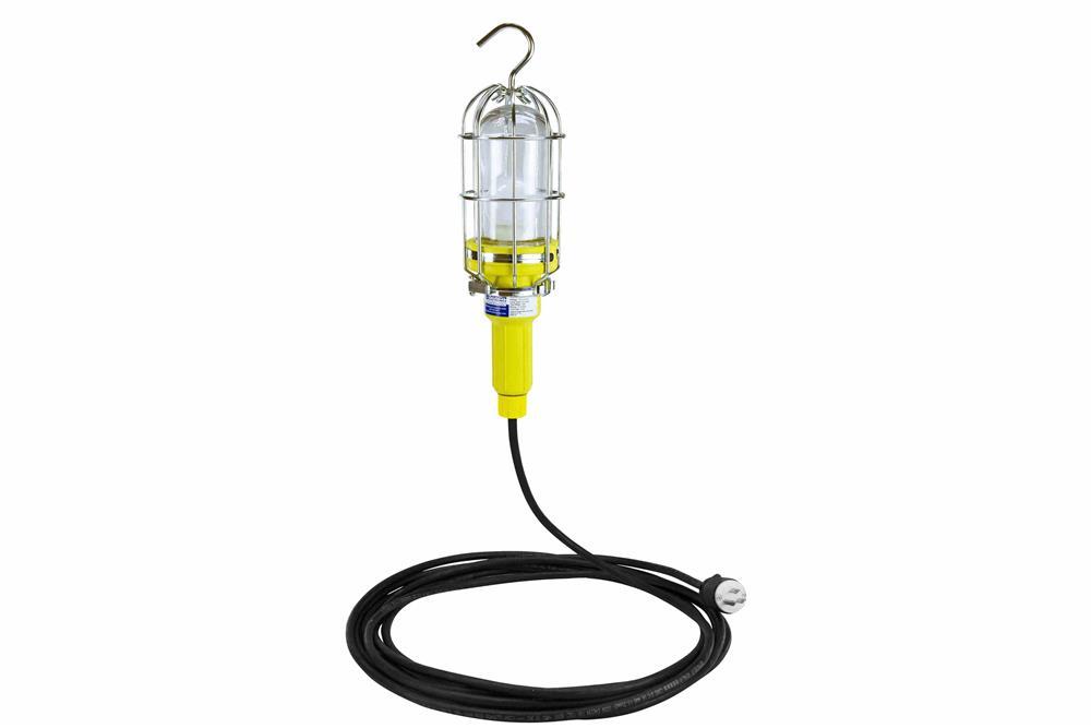 Made in the USA The Larson Electronics VPLHL-7WLED-25 10 Watt LED Vaporproof Trouble Light / Hand Lamp / Drop Light with 25` cord is both waterproof and vapor proof and constructed and certified to prevent the intrusion of water and/or moisture into the handle and/or head when used as instructed in wet locations. This unit is NRTL Certified to UL 153 and NEMA 4X.This waterproof and vapor proof LED light is available in 120-277V AC, 11V AC/DC, 25V AC/DC light configuration. This 10 watt, LED work light from LarsonElectronics.com produces 1050 lumens and comes complete with a 25` long 16/3 SOOW cord for long range and convenient operation. This waterproof and vapor proof drop light features a rubberized, insulated handle to provide a safe and secure grip and a stainless steel wire guard enclosure to protect the glass dome. These LED drop lights improve on the desirable qualities of similar incandescent models with higher foot candle light output, cooler operation and better light quality, and are ideal for use in wet areas and close work. The cool operation, good light color and evenness of coverage makes these lights ideal for a wide variety of close quarter work and inspection activities. This LED lamp has a 50,000 hour operational life and is available in 120-277V AC, 12V or 24V configurations for high or low voltage operation. Vaporproof lights are constructed and NRTL Certified to UL 153 standards, NEMA 4X rated, and designed to prevent water and/or moisture to enter the handle and/or head when used as instructed in wet locations. Rubberized handle improves operators grip and stainless steel mesh guard enclosures protects glass dome. Stainless hook enables operator to hang this task light overhead. Effective wet area task lighting that illuminates 10-12 feet in all directions with 3 footcandles of light, which is approximately the same amount of light available directly under a street light.