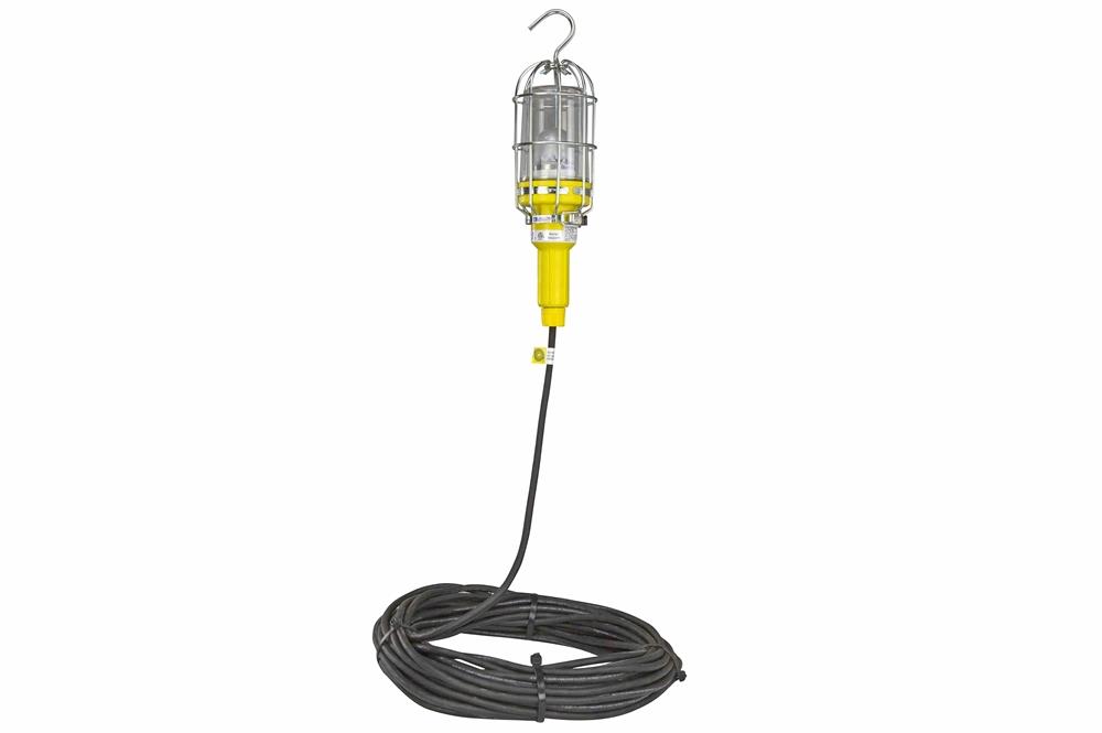 The 10-watt LED lamp used in this unit produces nearly 3 times the illumination of incandescent lamps as measured in foot candles, at less than 1/10th of the electricity usage and without the associated heat. This LED drop light runs at operating temperatures of 55° F, greatly reducing the chances of accidents or burns commonly associated with incandescent drop lights. This lamp has no ballast, which reduces lamp weight, a steel globe guard, and a stainless steel hook for easy overhead mounting. The solid state LED bulb has no filament, making it resistant to damage from impacts and dropping.