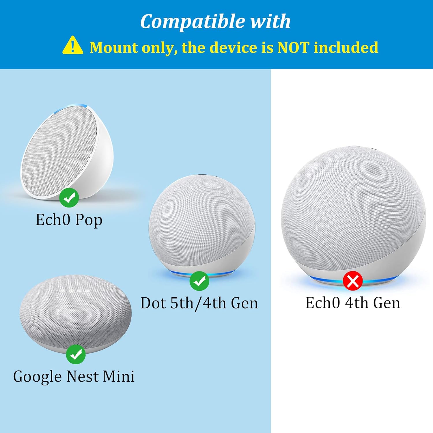 Compatibility:This wall mount is compatible with Dot 5th Gen & Dot 4th Gen & Pop & Google Nest Mini. Not for ech0 dot cube. (Note: Package contains the wall mount, the device and plug are not included.)