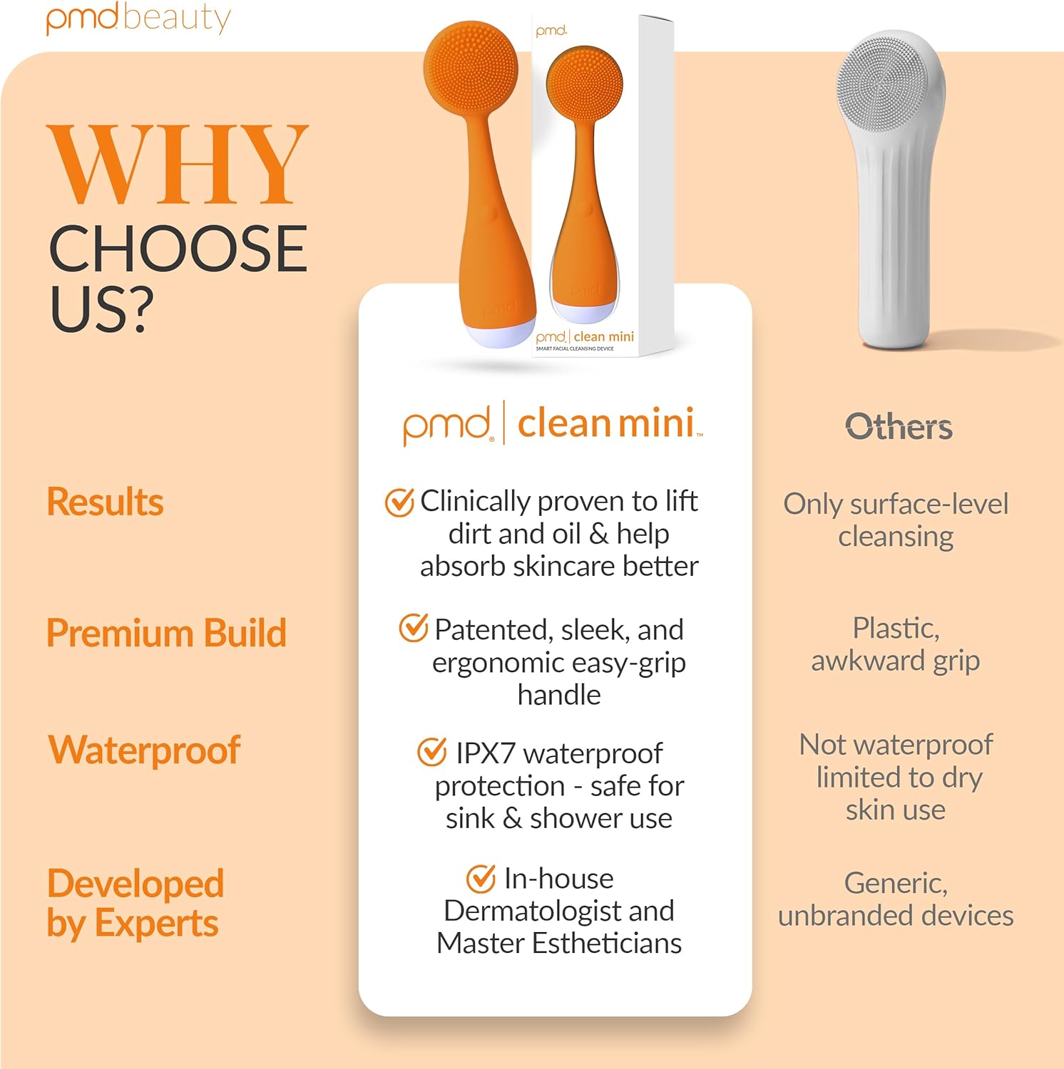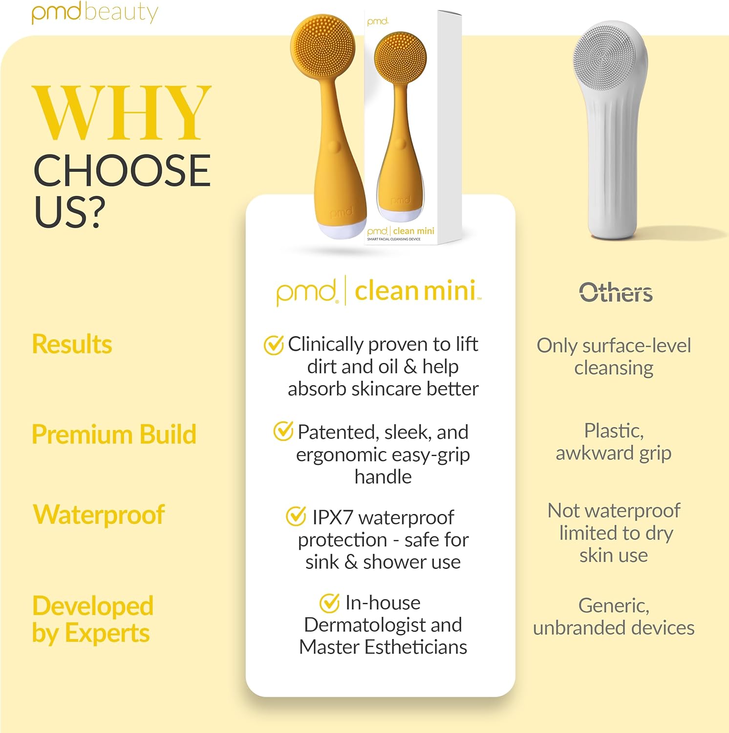PMD Clean Mini - Smart Facial Cleansing Device with Silicone Brush & Anti-Aging Massager - Waterproof - SonicGlow Vibration Technology - Clear Pores and Blackheads - Lift, Firm, and Tone Skin