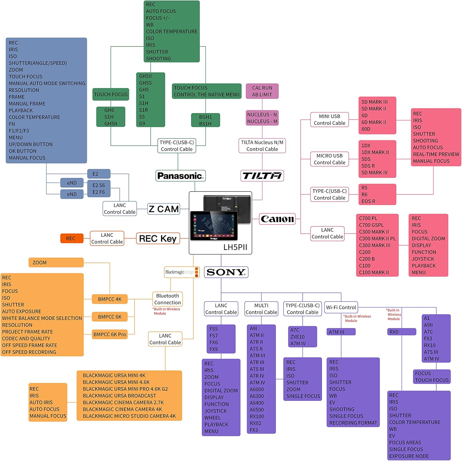 • 【Wireless&Wired Control】Built-in wireless control model. It supports wireless control BMPCC 4K/6K, EOS R5/R6/R8, BGH1/BS1H, wired control many cameras such as , FX30/FX6/FX9/A7S III/A7R IV, C70/C200/C300, GH5 II/GH6/S5, ZCAM E2 etc.