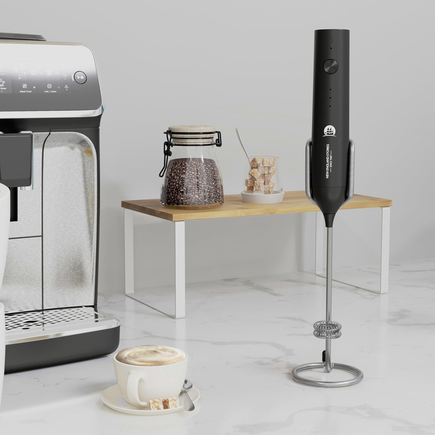 Powerful Milk Frother Handheld Foam Maker, Mini Whisk Drink Mixer for Coffee, Cappuccino, Latte, Matcha, Hot Chocolate, With Stand, Black