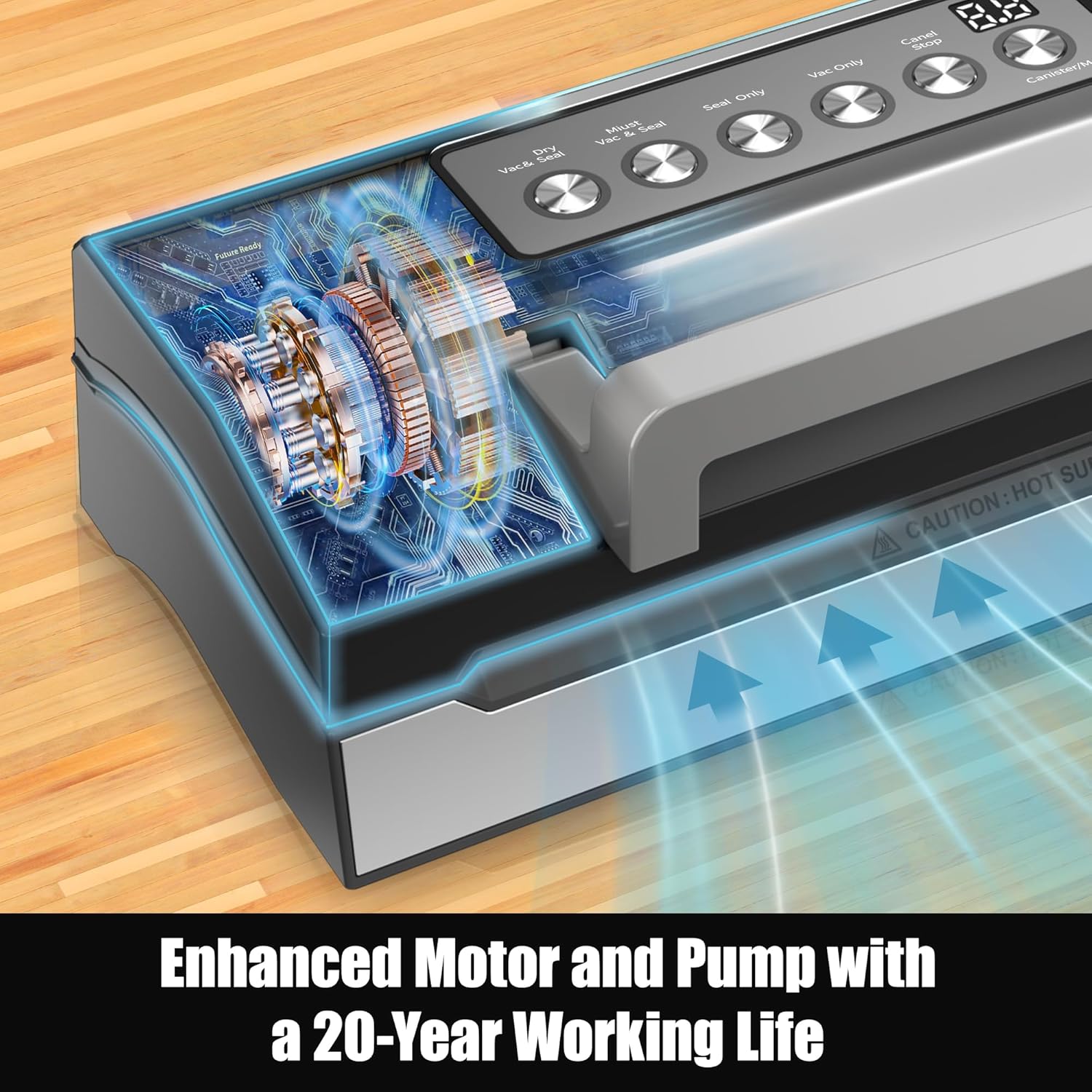 Exceptional Durability: Built for long-lasting use, this vacuum food sealer is your dependable kitchen companion. Its reinforced pump and dual seals are rated for up to 100,000 uses, ensuring reliable durability for all your food preservation needs.