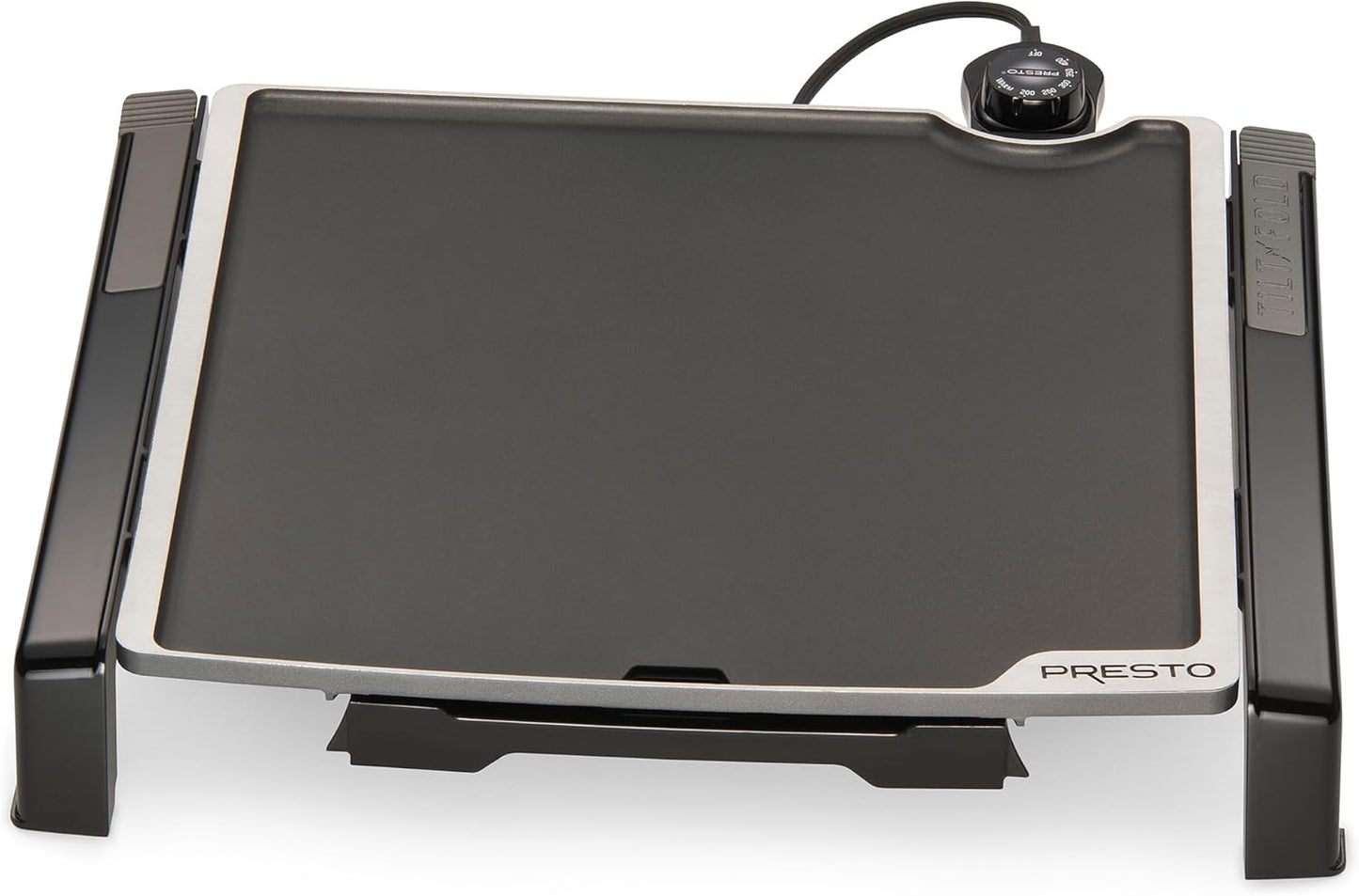 EASY CLEANING AND MAINTENANCE: Fully immersible with the heat control removed, this Presto griddle features a slide-out drip tray for quick and easy disposal of grease, making post-meal cleanup a breeze
