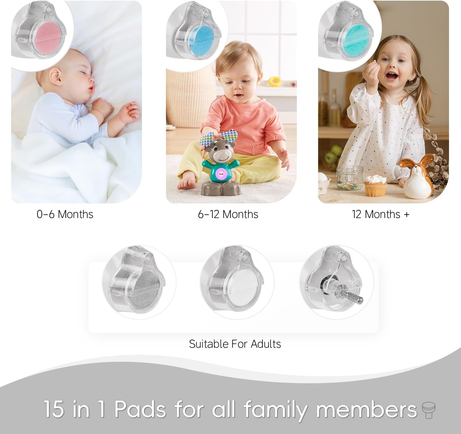 • 15 in 1 Nail Filer Care Kit: Prolixity baby nail file set comes with 10 grinding head file attachments tools for baby's nails for different stages of babies' growth, and 5 others for adult's nails. High-quality pads and interchangeable heads offering various smoothness levels for easily grinding and polishing whole family nails