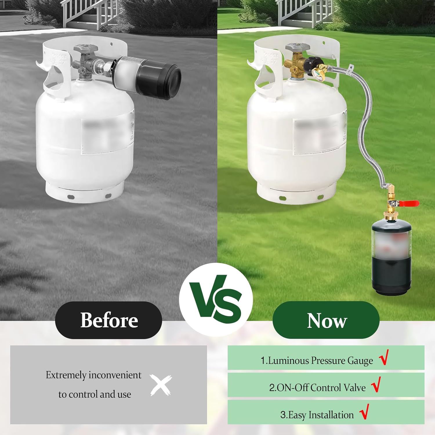 【Experience Upgrade Way to Refill】Upgrade your refilling process with our propane refill adapter with stainless steel braided hose, equipped with a night vision pressure gauge and a ON/OFF valve, ensuring precise control throughout the filling process. Plus, benefit from the inclusion of 2 propane cylinder caps for added convenience