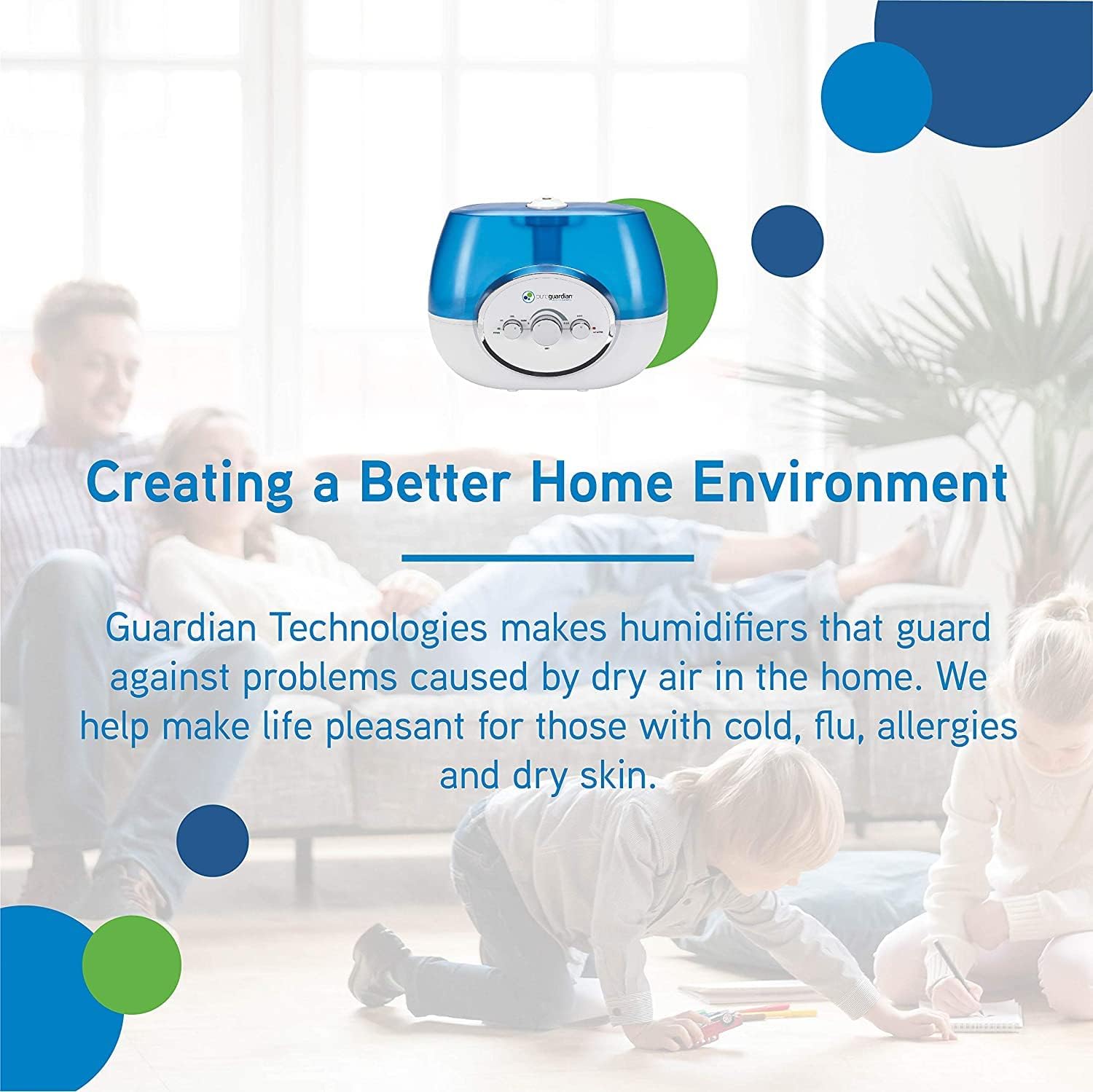PureGuardian H1510 Ultrasonic Warm and Cool Mist Humidifier for Bedrooms, Quiet, Filter-Free, 11L Output Up to 100 Hour Run Time, 1.5 Gallon Treated Tank Reduces Mold, Pure Guardian Room Humidifier, White and Blue, 1 packPL17-B00G7VNO4K