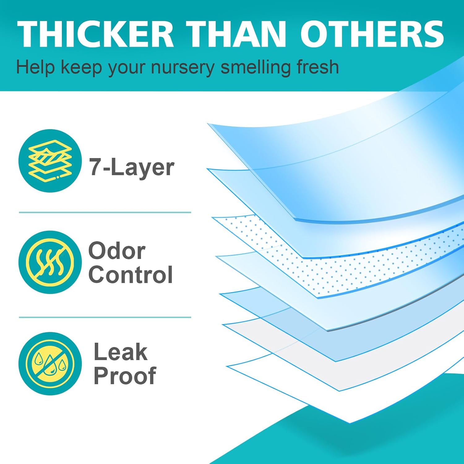 • 【ODOR LOCK】Our diaper pail refill bags square box uses high-barrier odor-locking material,powered by multi-layer PE Technology,created an airtight seal to trap 99% of odors,keep baby nursery fresh & clean for days!