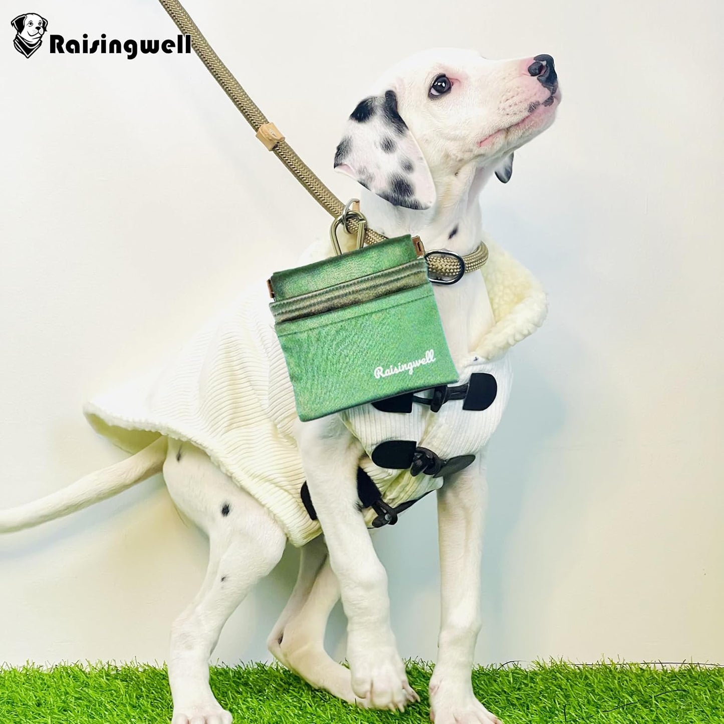 • Durable Material: Raisingwell's dog treat training pouch is crafted from durable, washable, non-toxic vegan fabric, made of pure cotton. In particular, the waterproof lining addresses the issue of difficult cleaning inside the training pouch.