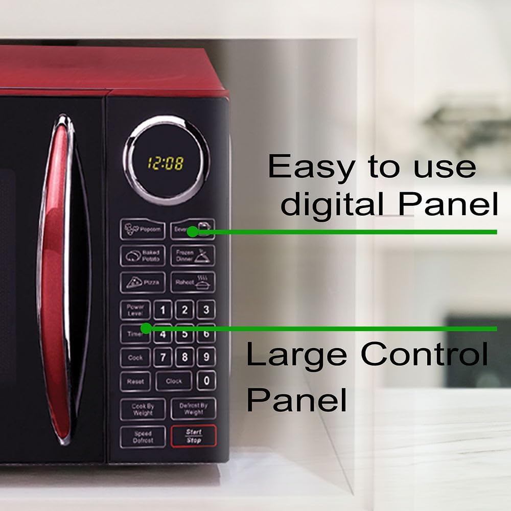 Brand RCA Product Dimensions 37.6D x 48.3W x 27.7H Centimetres Colour Red Capacity 0.9 Cubic Feet Special feature Timer, Child Safety Lock, Defrost, Turntable, Digital Control Recommended uses for product Residential Installation type Countertop Wattage 900 watts Material Stainless Steel, Glass Included components Roller Ring