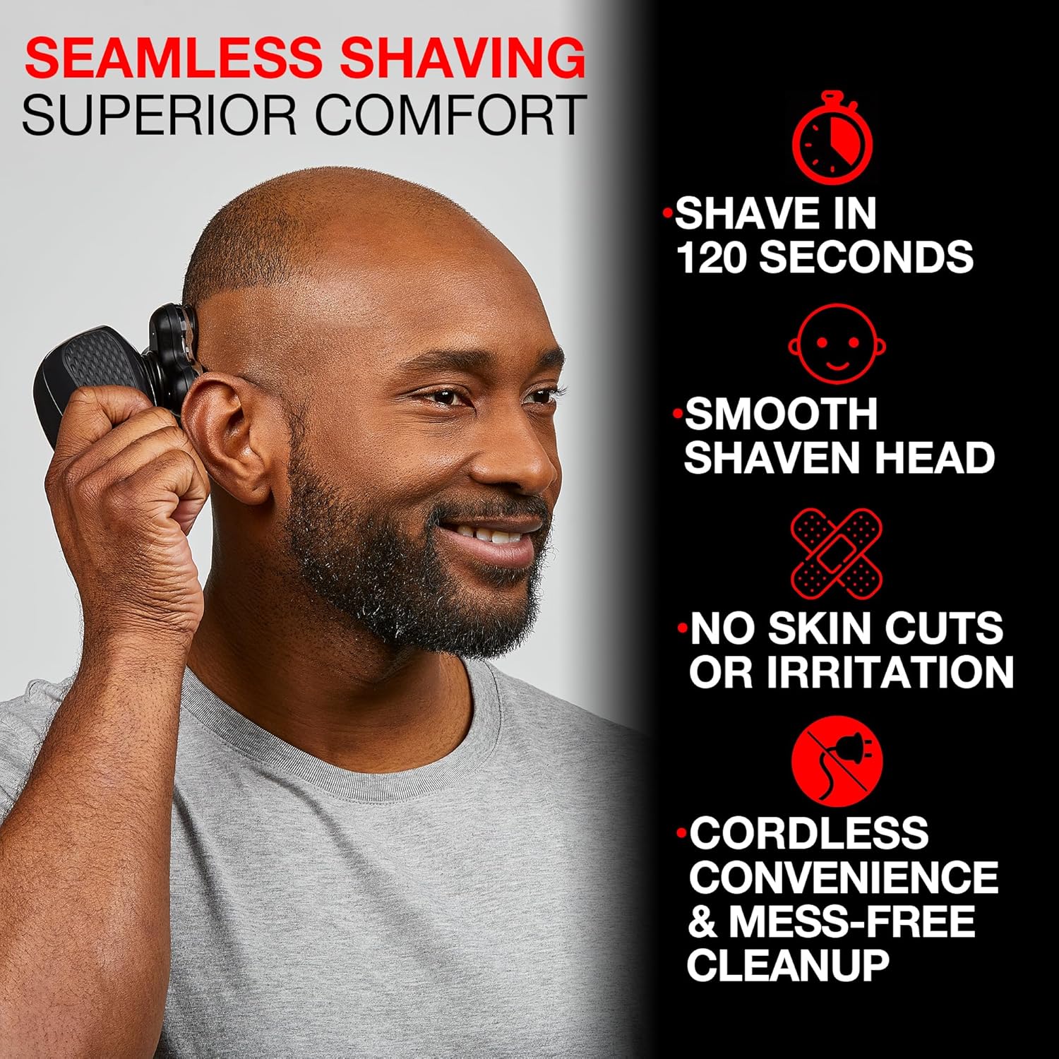 We know it takes work to maintain a clean, shaven head. So we designed this electric shaver specifically for fast and comfortable head shaves, giving you the ability to achieve a smooth, shaven head in under two minutes. The Remington balder pro head shaver features 5 dual track heads, delivering 66% more cutting heads for a close, comfortable shave. With multidirectional pivot, flex & contour, you get maximum skin contact on all sides of your head. Daily cleanup is easy thanks to the chamber below the shaver heads, which collects trimmed hairs as you shave. Plus, the shaver is 100% waterproof for simple cleanup and versatile performance like shaving in the shower or with foam. The lithium rechargeable battery delivers up to 50 minutes of runtime for reliable shaving and cordless convenience.