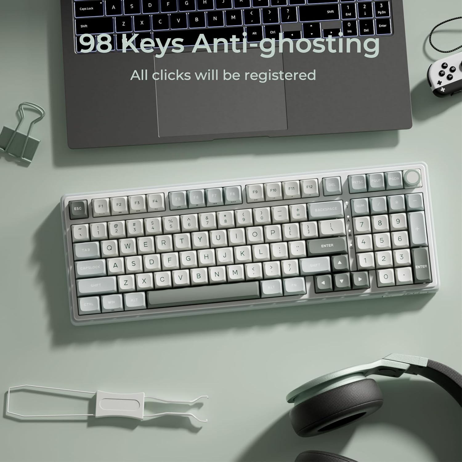 - đăGasket Mount Gaming Keyboard with Number Padă: Computer keyboard adopts 98 keys layout design, retaining numpad, arrow keys and most functions, saving your desktop space and making it more suitable for gaming and work. Five layers sound-absorbing foam to ensure thocky feeling and creamy sounding for youÂ