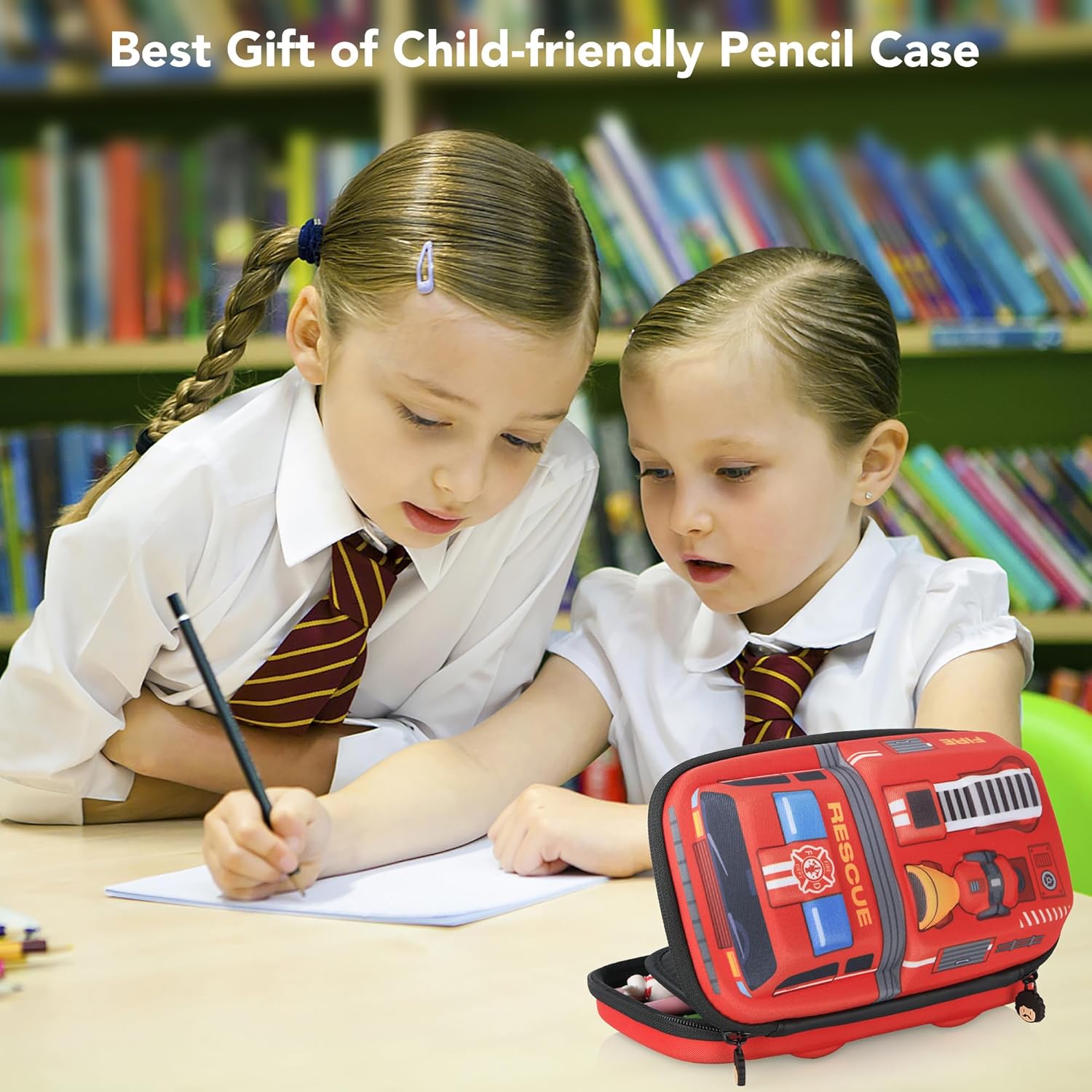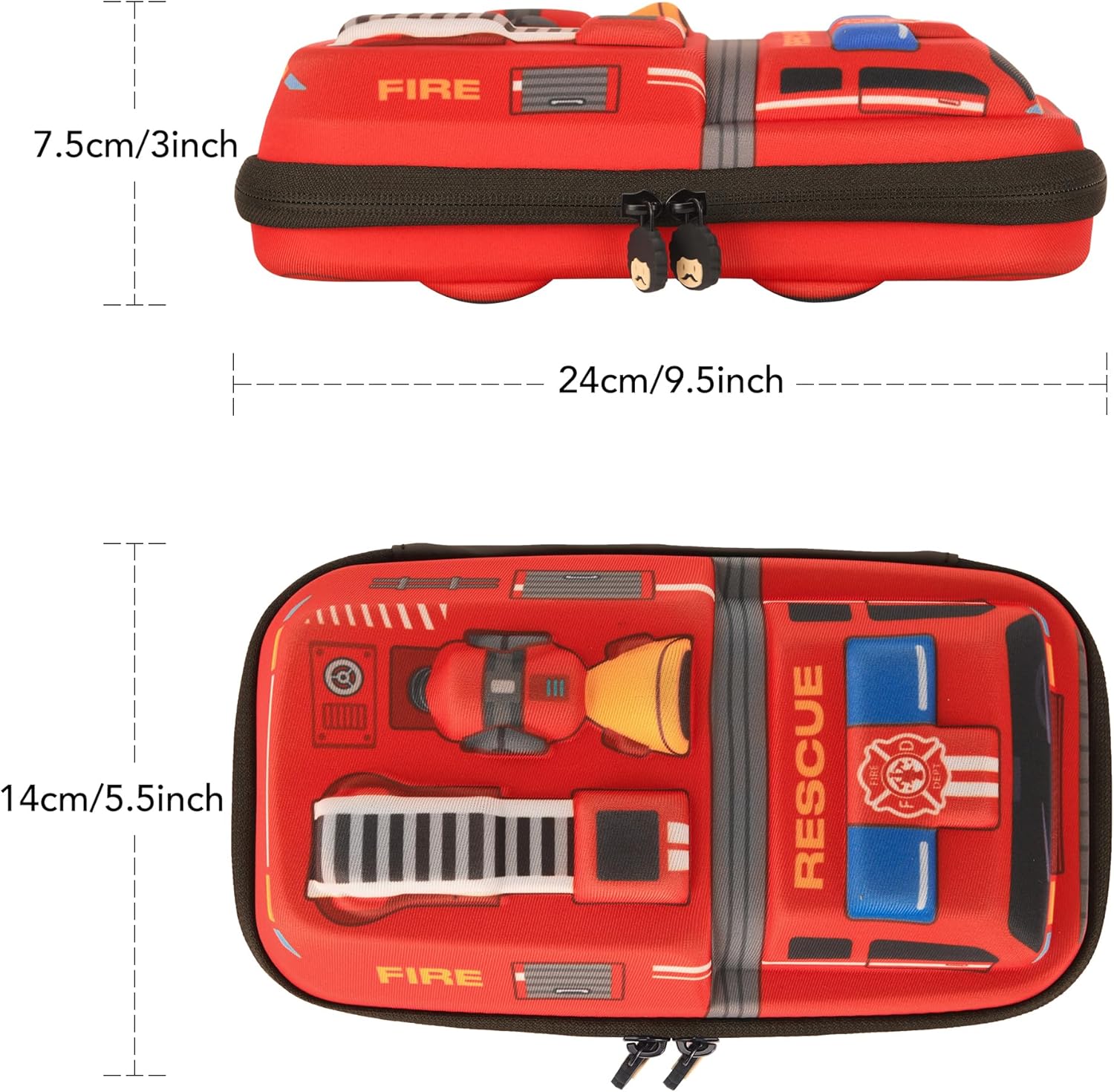 【Unique design】The cool Fire Truck shape, it will make your kids stand out in the classroom. The large opening of the zipper pencil box helps your kids to keep everything organized and visible at all times.