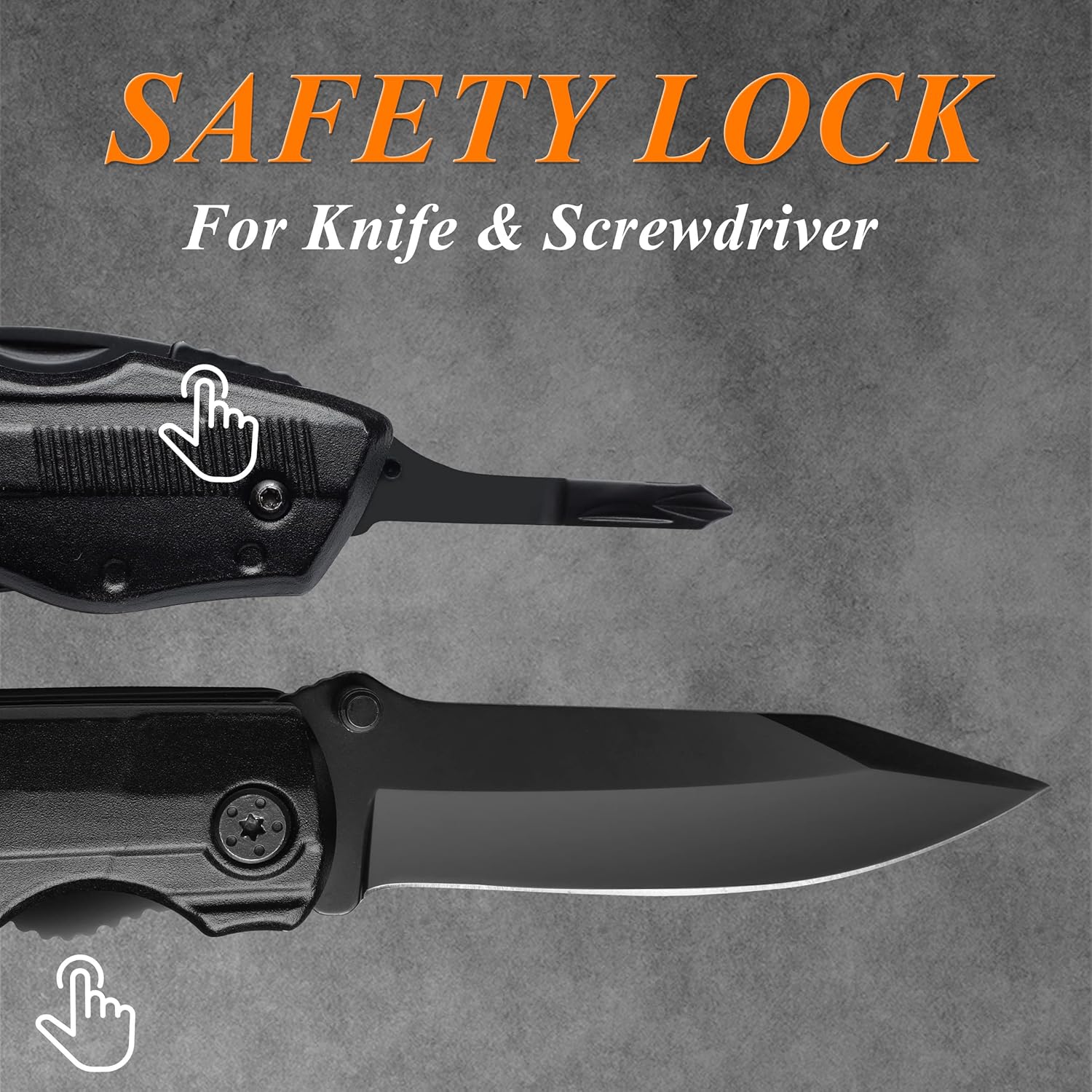 Secure and Safe: This Folding Tactical Knife is equipped with a liner lock that securely locks the Knife blade and screwdriver in place for use