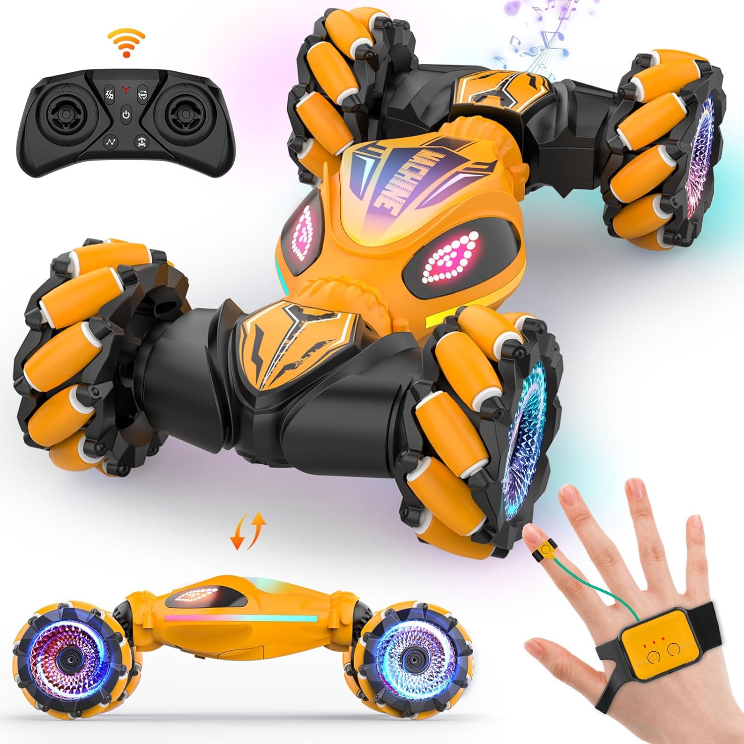 SAUFTTI Remote Control Car, Gesture Sensor RC Stunt Cars Toys for Boys Age 6 7 8 9 10 11 12+ Years Old, 2.4GHz 4WD RC 360° Flips Off Road Vehicle Toy with Lights/Music, Gifts for Kids Girls