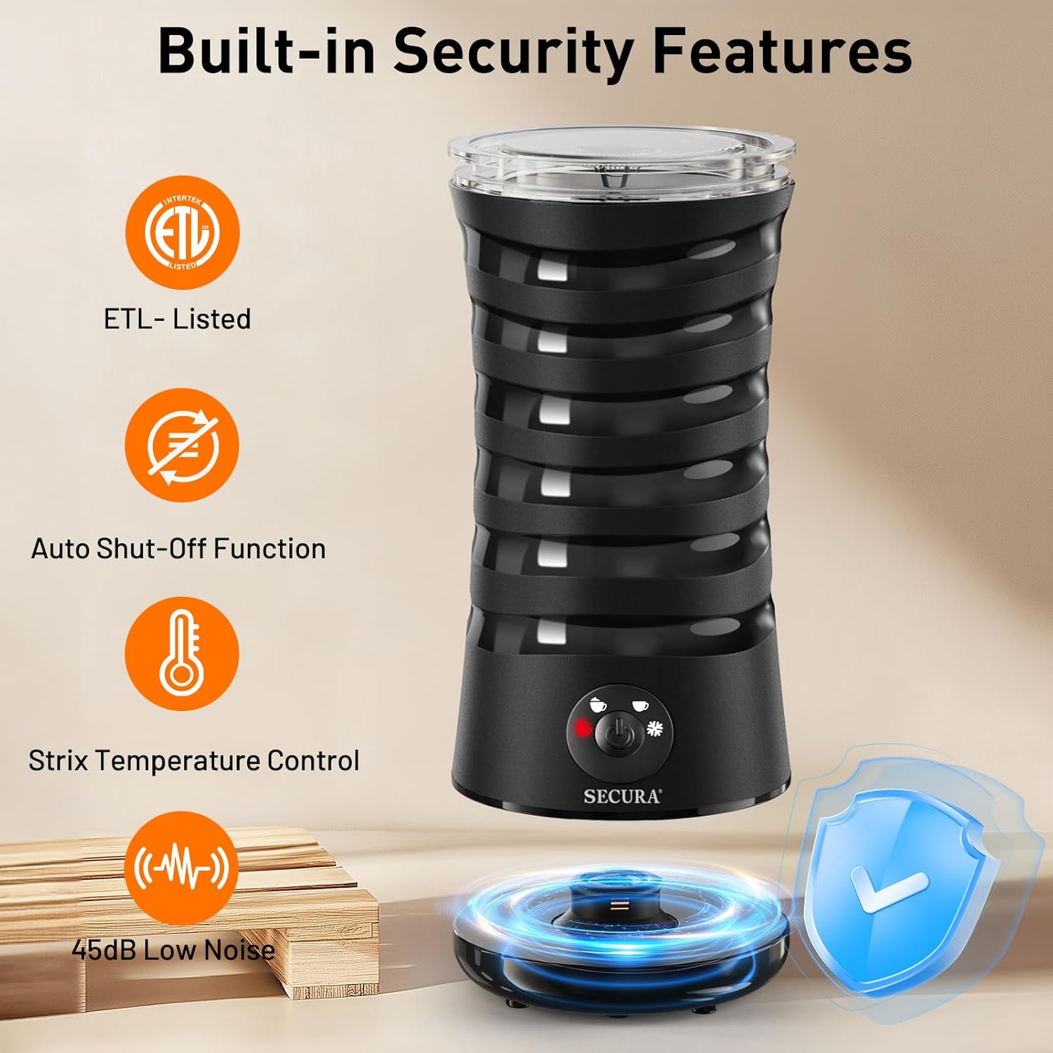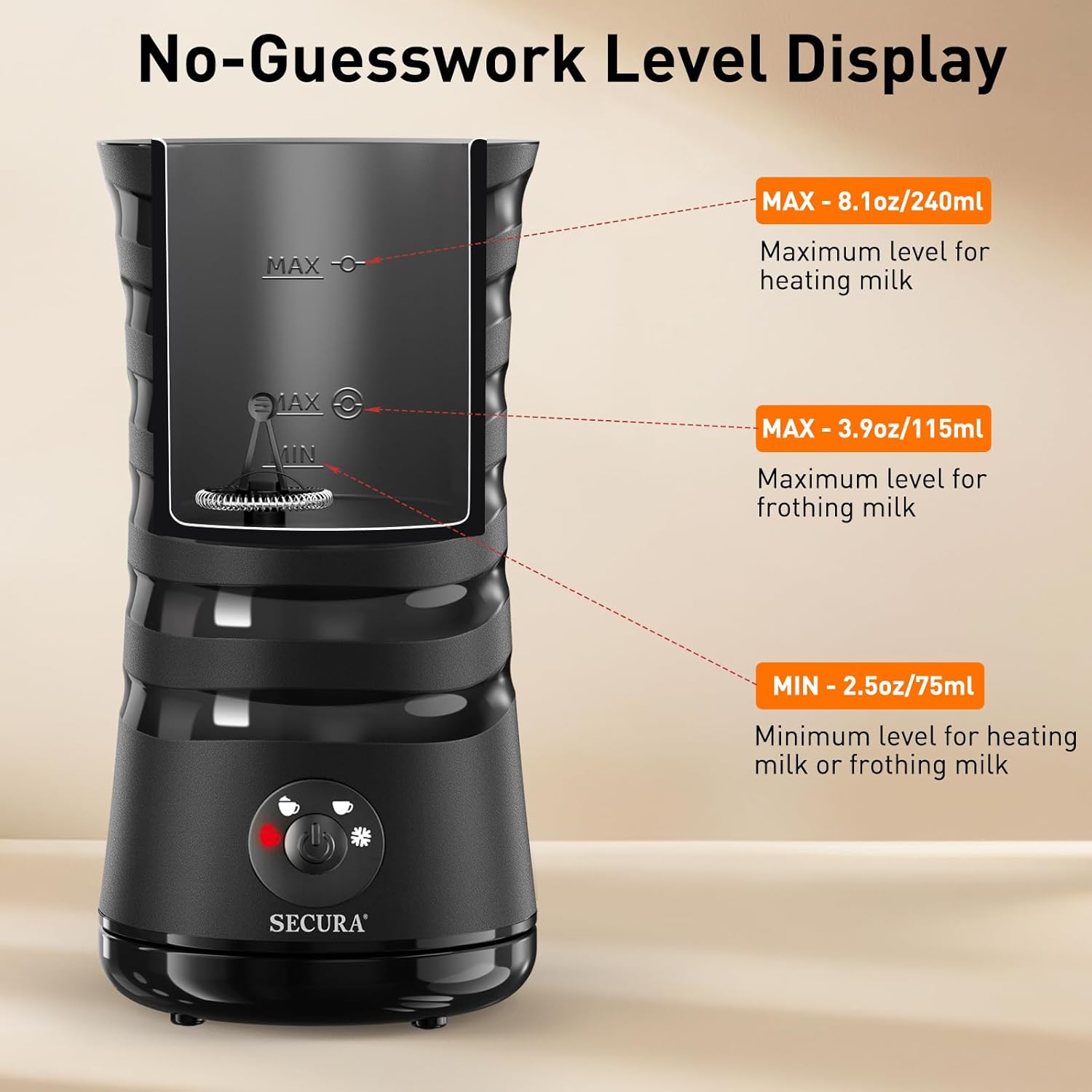 Secura Electric Milk Frother, Automatic Milk Steamer, 4-in-1 Hot & Cold Foam Maker-8.4oz/240ml Milk Warmer for Latte, Cappuccinos, Macchiato with Silicone Spatula, Silent Operation & Shut-Off
