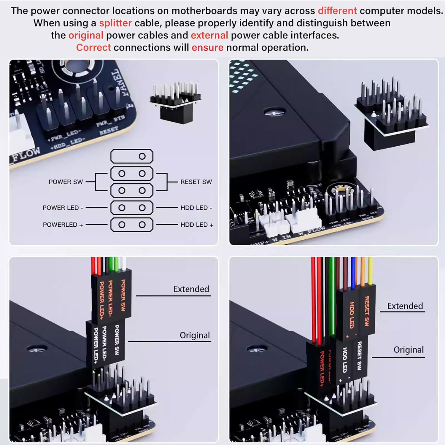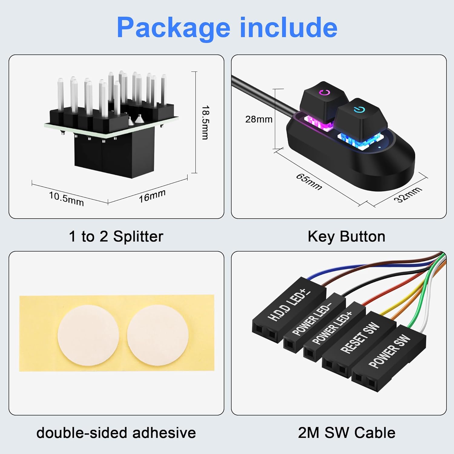 Desktop External Extension Switch:Adopt mechanical keyboard design, use 2m long cable for on/off and restart buttons, add or extend the power on and restart buttons to a place you find more convenient. Improve work efficiency