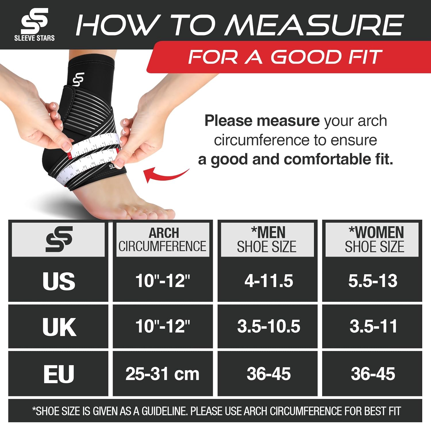 ✅ Discover your ideal fit!: Our ankle compression sleeve is designed to be versatile, but not every foot is the same. Consult our product images for precise measurements. Shoe sizes are a helpful reference, but measuring your arch circumference guarantees a tailored fit.