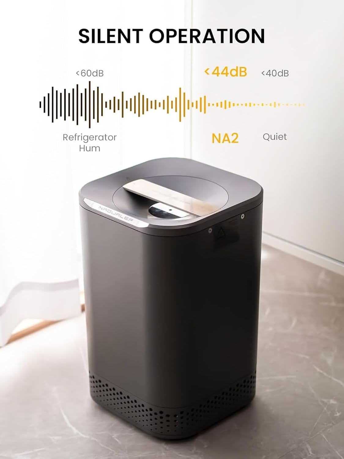 【One-Key turn Food Waste to Fertilizer】Reduces food waste by 90% within 1-3 Hours. Nagual automatic mill Composting Bin transforms food scraps and kitchen waste (fruit peels, vegetable scraps, small bones) into nutritious fertilizer by heating, grinding, dehydrating.