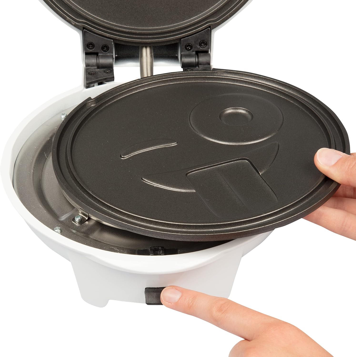 Smiley Face Waffler & Pancake Maker w 2 Interchangeable, Removable 8" Plates- Adjustable Temperature Control, Non-stick Electric Griddle Iron- Easy Clean, Make Kid's Breakfast Fun- Great Holiday Gift