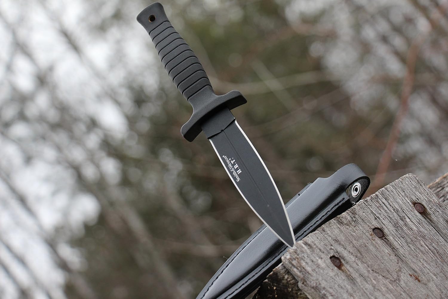 Smith & Wesson SWHRT9B 9in High Carbon S.S. Fixed Blade Knife with 4.7in Dual Edge Blade and TPE Handle for Outdoor, Tactical, Survival and EDC, Multi
