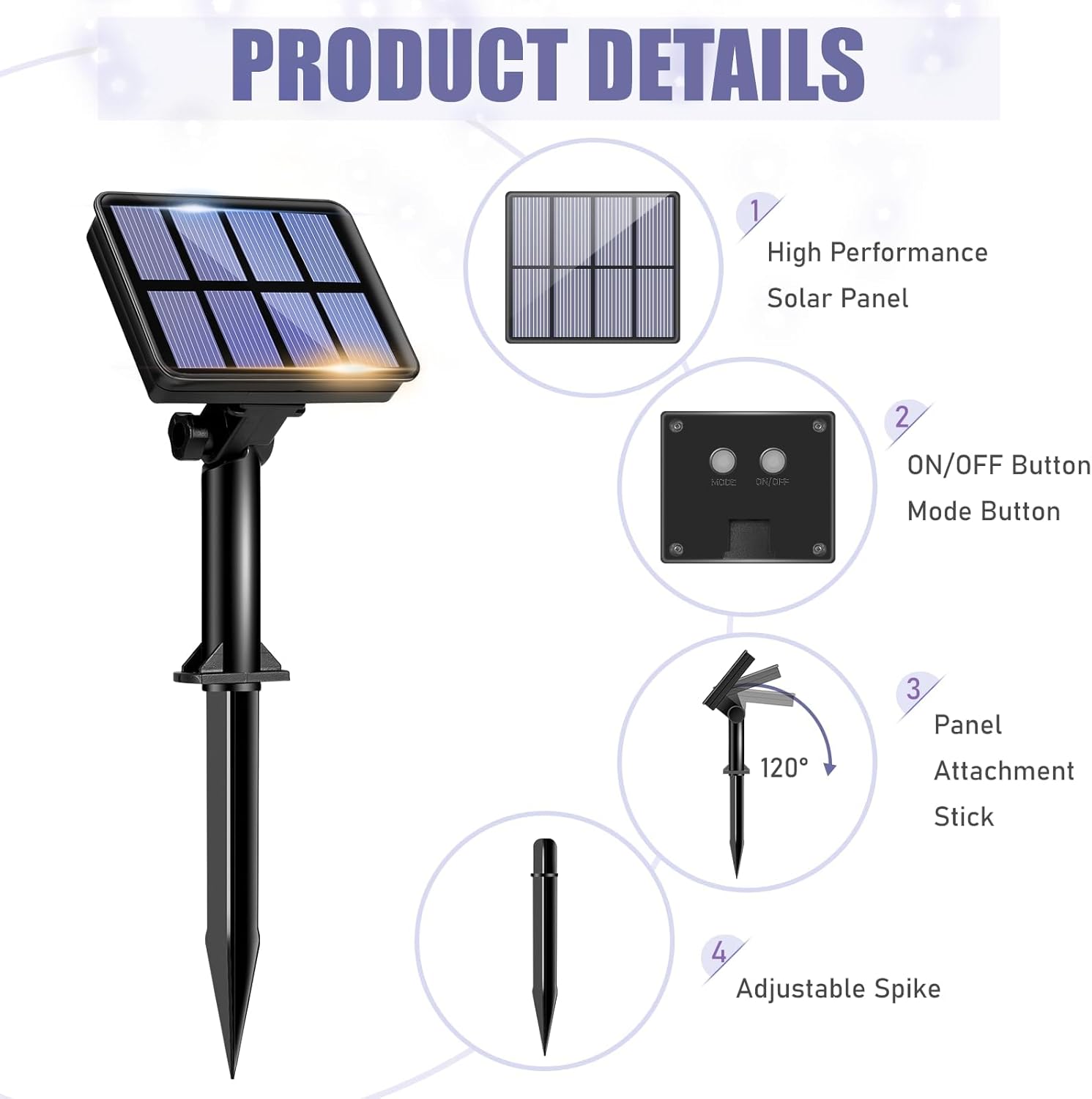 - 【Waterproof IP65】Outdoor fairy lights solar are made of high quality materials and is IP65 waterproof. It can withstand any weather, rain, shine or snow. No need to worry about short circuits or weather damage