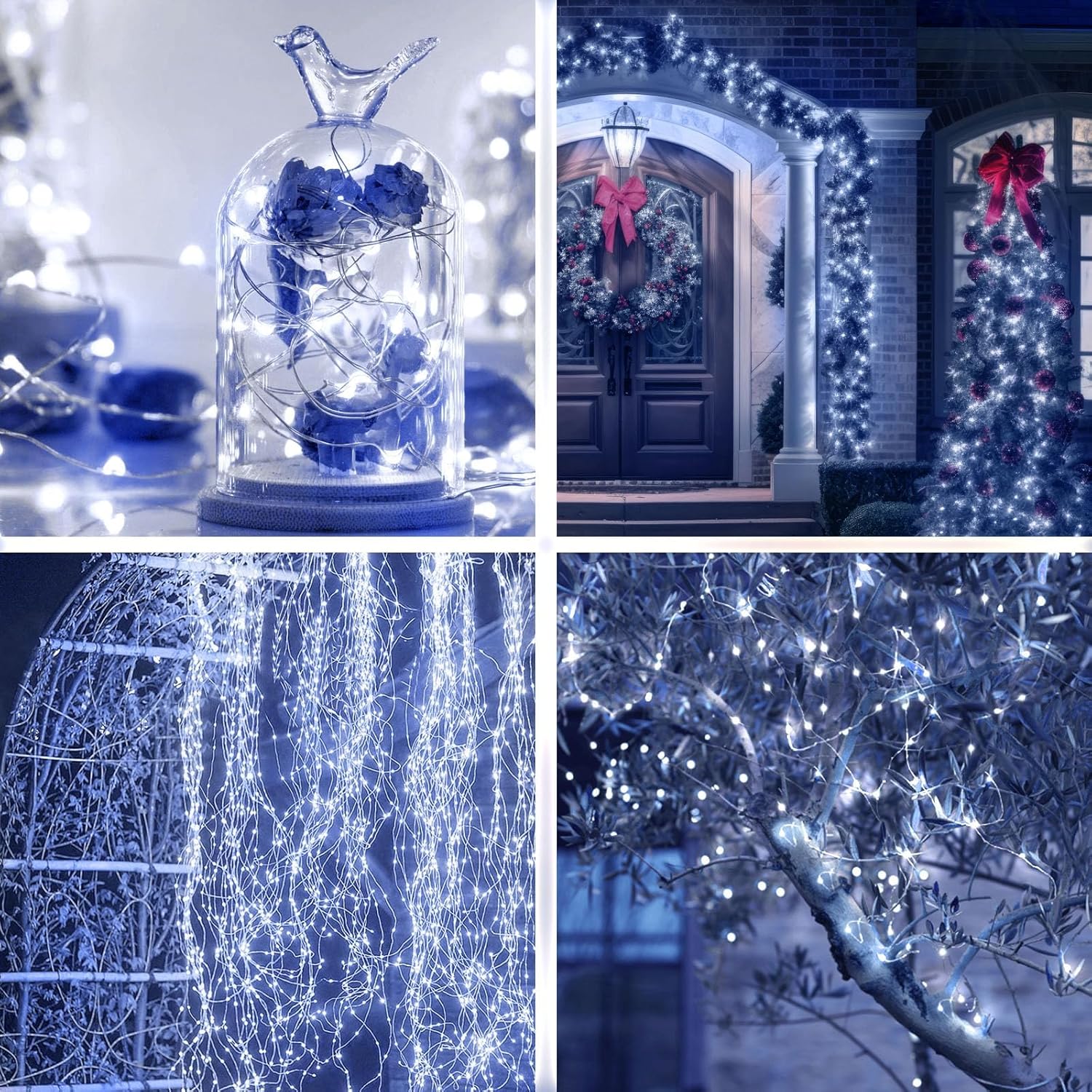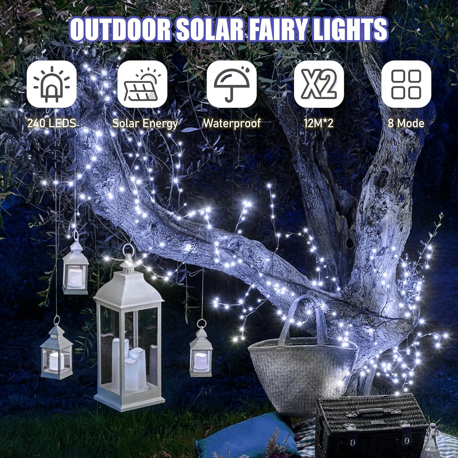 Solar Fairy Lights Outdoor, 2 Pack Total 240 LED Solar String Lights, 8 Modes Solar Twinkle Lights Outdoor Waterproof, Copper Wire Lights for Garden Tree Yard Party Christmas Decorations (Cool White)