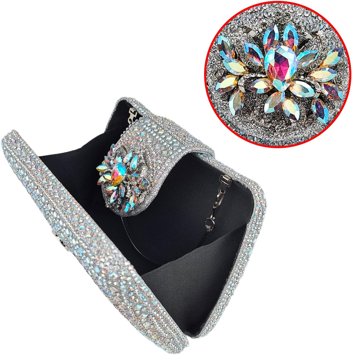 Sparkly Rhinestone Unique Evening Bag Women Floral Clutch Handbag Shoulder Bags