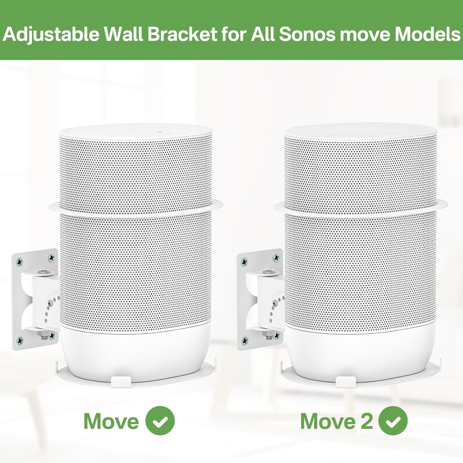 • Specifically Designed for - The speaker wall mount is designed for Sonos Move 1 and Move 2. It has very good compatibility, which makes it convenient for you to switch between the first and second generations. The bracket for Sonos Move is special designed to fit the speaker's charging base, ensuring secure mounting and effortless charging. Save space and time with this stable solution that keeps your speaker charged and ready to use. (Note: the charging base is not included)