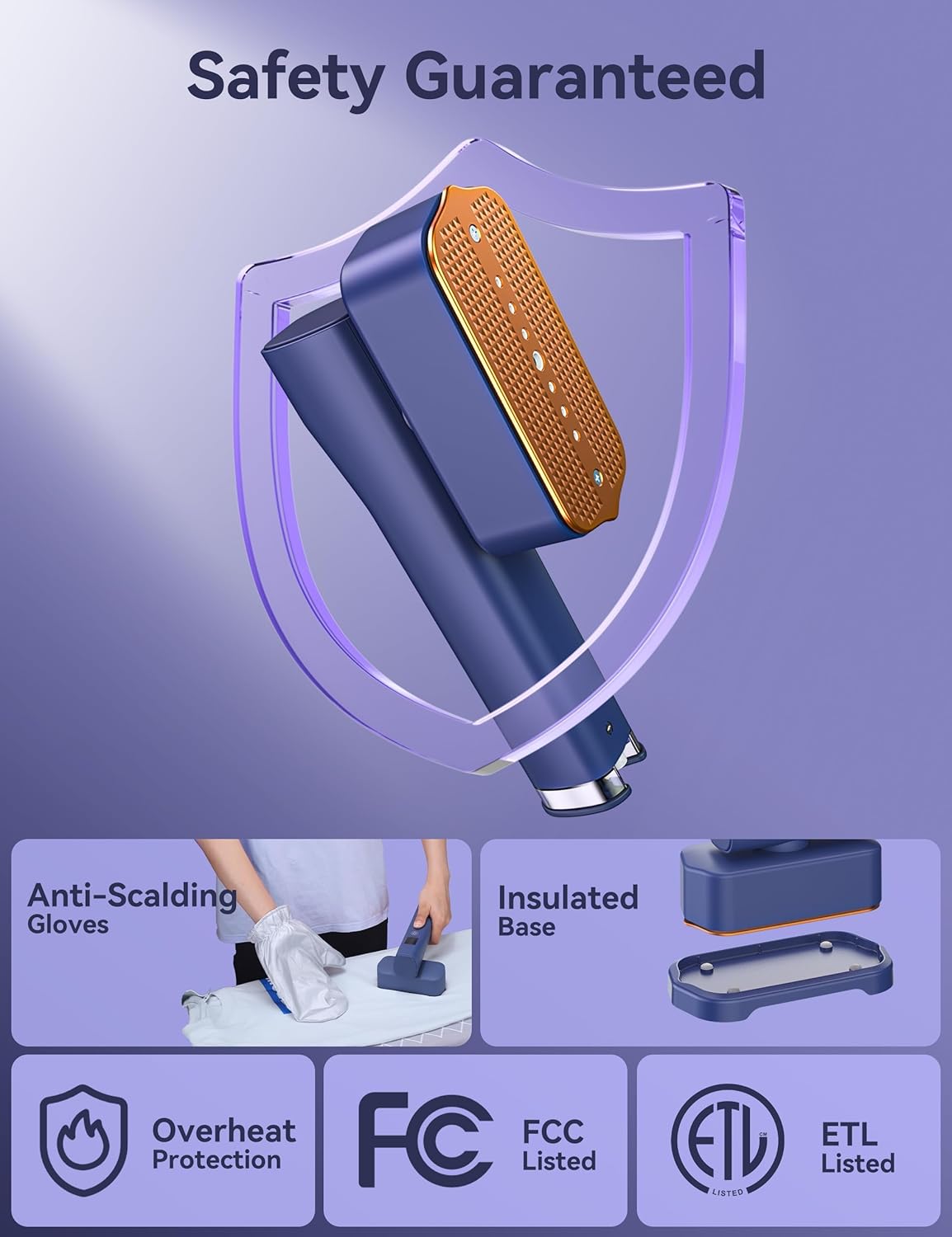【Travel Essential, Safe and Convenient】This mini portable travel steamer for clothes is designed to be lightweight and portable, which can save space when traveling; stylish appearance, full-featured, it is a perfect choice for travel, home, business and other occasions (Note: Using it in Europe or other 220-240V regions may cause a short circuit). The insulated base and the included steam ironing gloves ensure safe use, providing you with comprehensive safety protection.