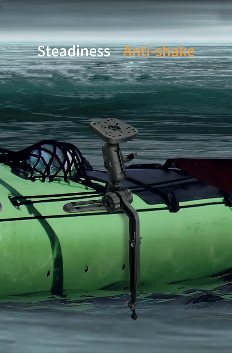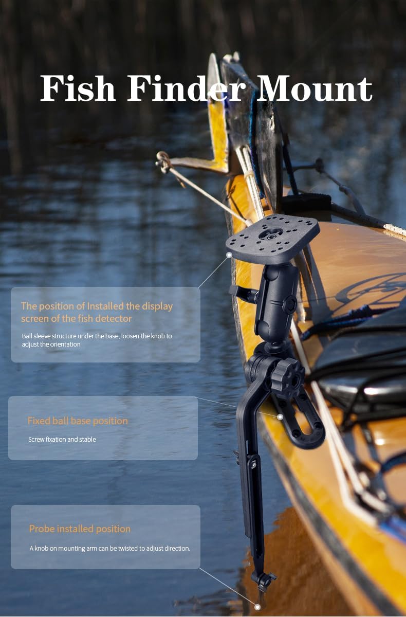 •  Fish Finder Transducer Mounting Arm is designed for kayaks/SUP and small boat anglers needing install the fishfinder and radar. Fish finder mount has a few options of screw hole patterns to fit various fish finders.