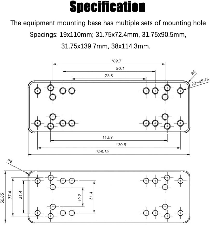 Fish finder swing mount with rectangle plate, the rectangle plate contains different combinations of pre-drilled holes to match many electronic devices and mounts, including Marine GPS, CB Radios, Ham Radios, Gimbal Brackets and more