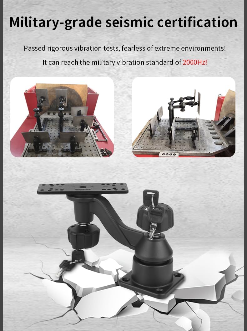 Heavy-duty drill-down fishfinder mounting solution features 6" swing arm to mount on any flat surface, such as the dashboards, decks of boats and kayaks. Two pivot points allow for complete 360-degree rotation