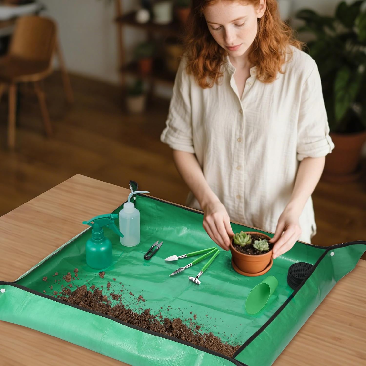 【Transplant Pad】: This is a great combination, a 39.4 * 39.4 inch plant soil transplant pad can accommodate multiple plants working simultaneously and mix different types of soil inside the pad to meet the nutritional needs of the plants. Succulent tools with mats can help you transplant plants well, suitable for succulent plants, bonsai plants, and small indoor plants