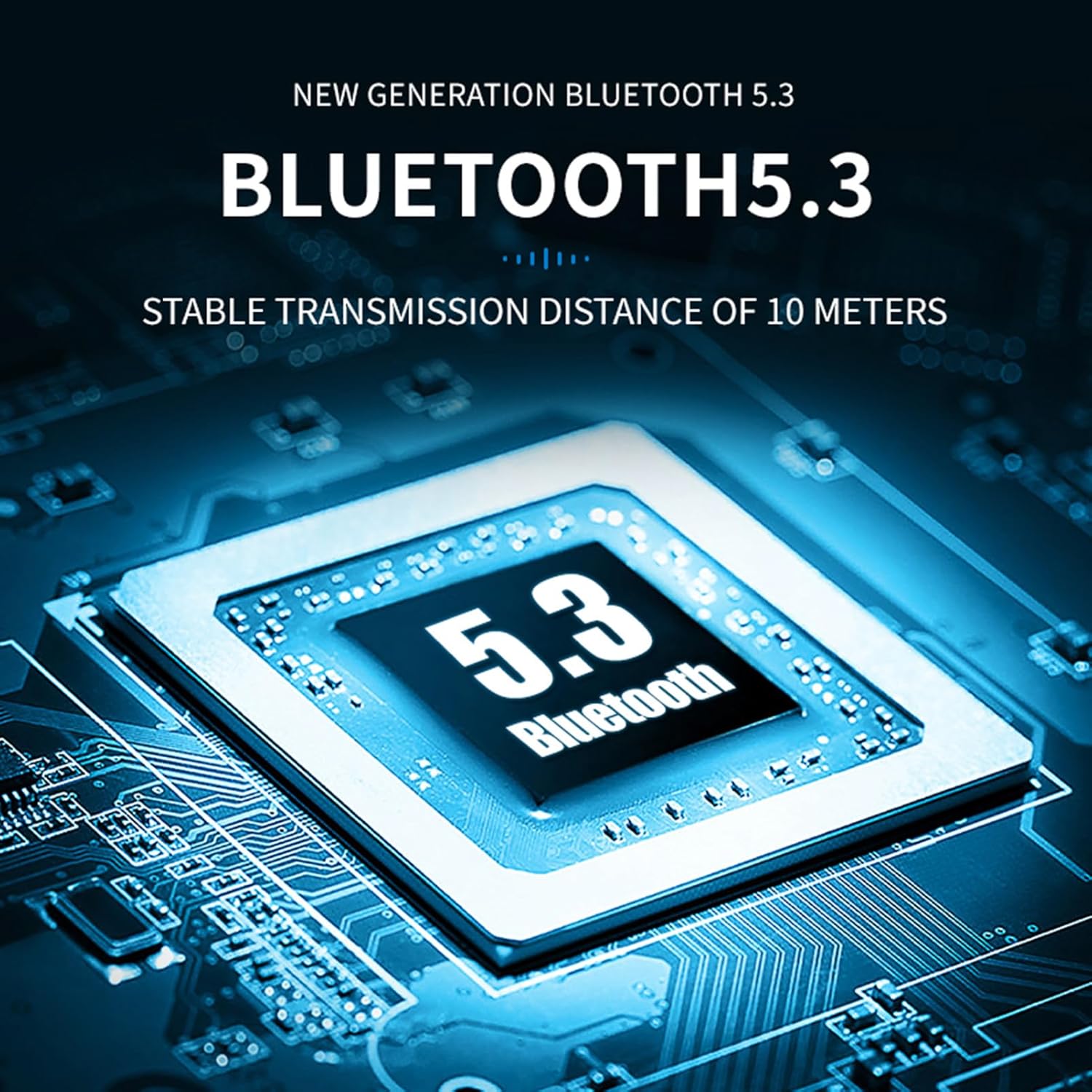HIGH QUALITY SOUND - The Bluetooth earpiece adopts the bluetooth 5.3 chip technology, which provides more clear sound and stable connection, allowing you to hear crystal clear calls like you are communicating face to face with others. Don't worry about interruptions on listing to music and calling.